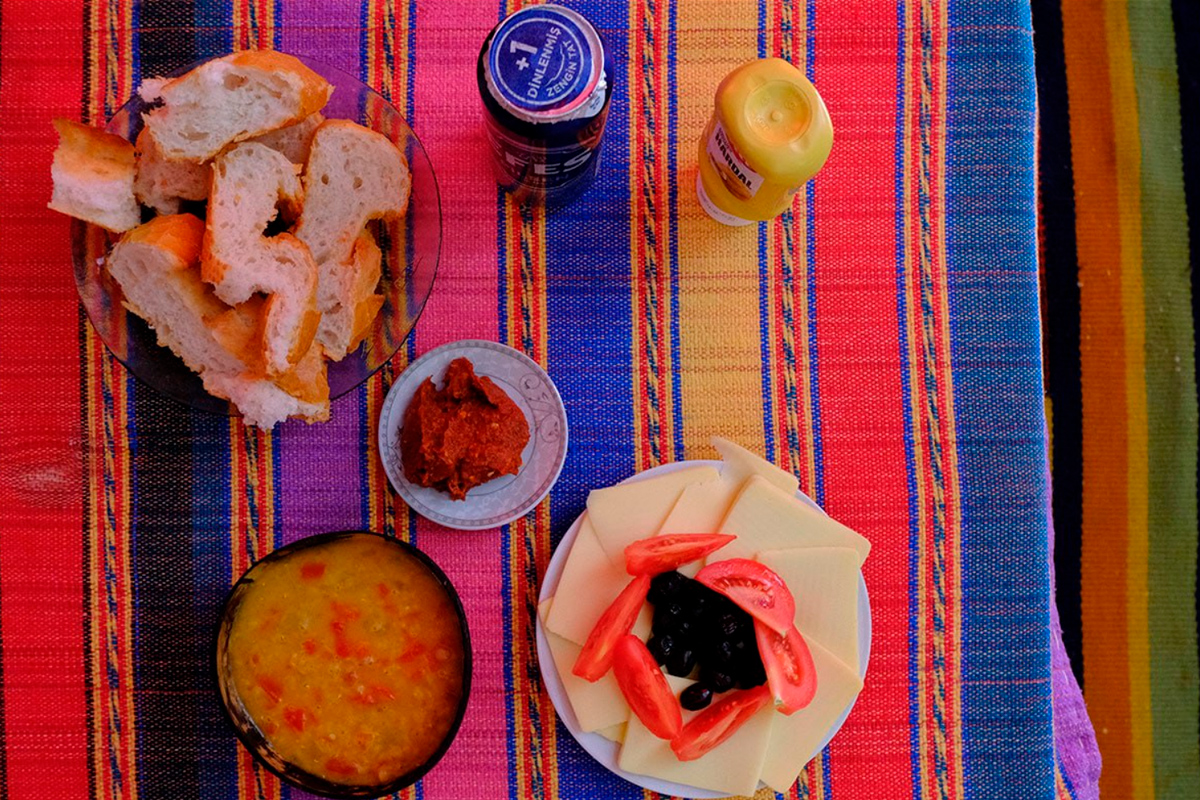 Супербюджетный, но от этого не менее шикарный турецкий поздний обед. Экмек — большой свежайший батон белого, пять лир (около 18 рублей), цена на хлеб регулируется государством. Турки едят очень много хлеба. Пиво везде «Эфес». Дороже, чем в России, раза в полтора-два. Паста из сладкого перца со специями. Мержимек чорба — чечевичный суп, себестоимость стремится к нулю. Сыр для тостов, помидоры, оливки. Оливки в Турции не деликатес, а ежедневный продуктФото: из личного архива героев Решив самые насущные задачи, я почувствовала, как вдруг расправились плечи, перестали сжиматься зубы. Мы много и с удовольствием гуляли ночью по темным улицам, ходили на море, нашли невероятной красоты сосновый лес в городе. Никогда я не чувствовала себя настолько в безопасности. Даже огромные бродячие собаки были чрезвычайно ласковы и тактичны. Как у многих свежепонаехавших, наши первые месяцы в Турции прошли в полнейшей эйфории от теплой дружелюбной страны.