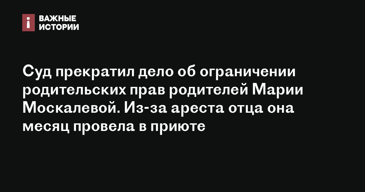 Суд прекратил дело об ограничении родительских прав родителей школьницы Марии Москалевой, которая более месяца провела в приюте, сообщает «ОВД-Инфо».