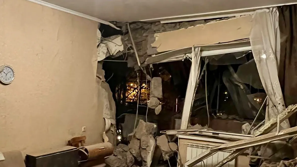 A damaged flat in the aftermath of the explosion in Belgorod, 20 April 2023. Photo: Telegram