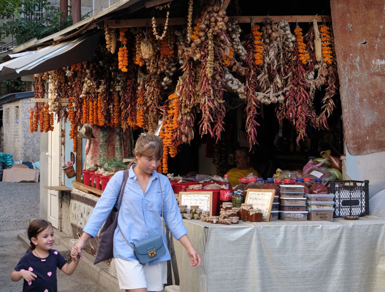 • На выход из квартала — ряды специй, где торгует героиня Paper Kartuli Луиза. Здесь стоит купить и маринованные закуски: черемшу, джонджоли, чеснок, огурцы.