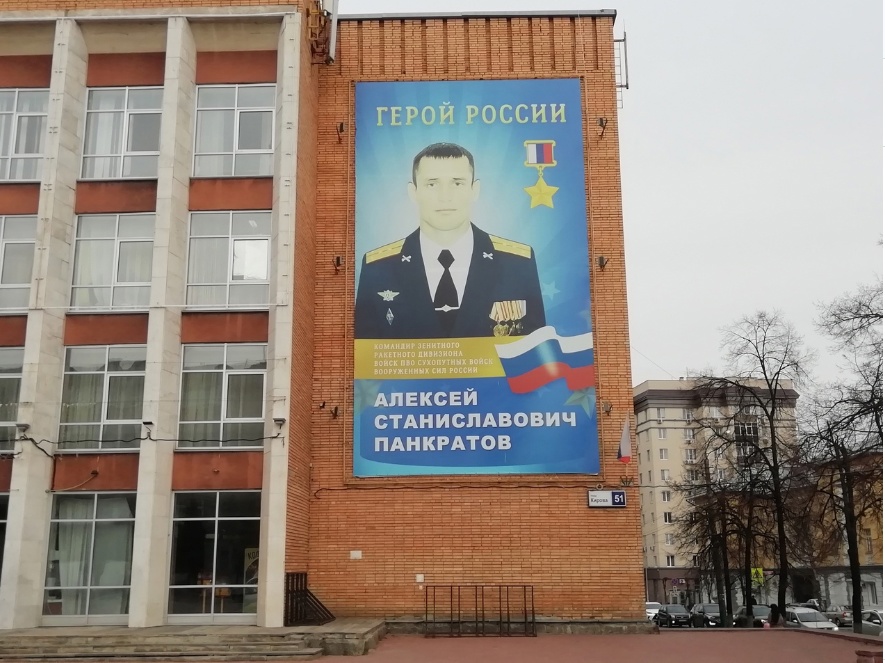 Почему так некачественно был сделан баннер с портретом Героя России Панкратовым А.С. размещенный 02 июня 2022 г. на Доме молодежи?