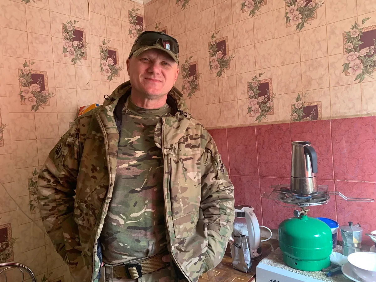 Hennadiy, a 55-year-old Kyiv resident, a historian by training and veteran of the ATO (the operation in Donbas in 2014-2018 — translator’s note), who volunteered to go to the front at the start of the full-scale war, makes Lavazza coffee for his guests on a gas burner and discusses his private attempts to communicate with the local population. He talks about a local man who accused Ukrainians of shooting up the area.