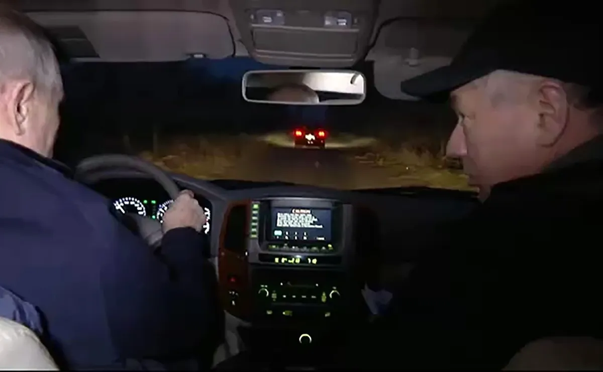 Но вот в последние полгода появился и другой. Этот Путин лично едет по Крымскому мосту (правда, снимают в эту поездку в основном его затылок), навещает за рулем автомобиля ночной Мариуполь (где включает поворотники и останавливается на светофорах!), и даже на вертолете посещает прифронтовые территории (правда, лопасти вертолета на видео не вращаются, а фронт всё-таки находится в 150 км от места поездки).