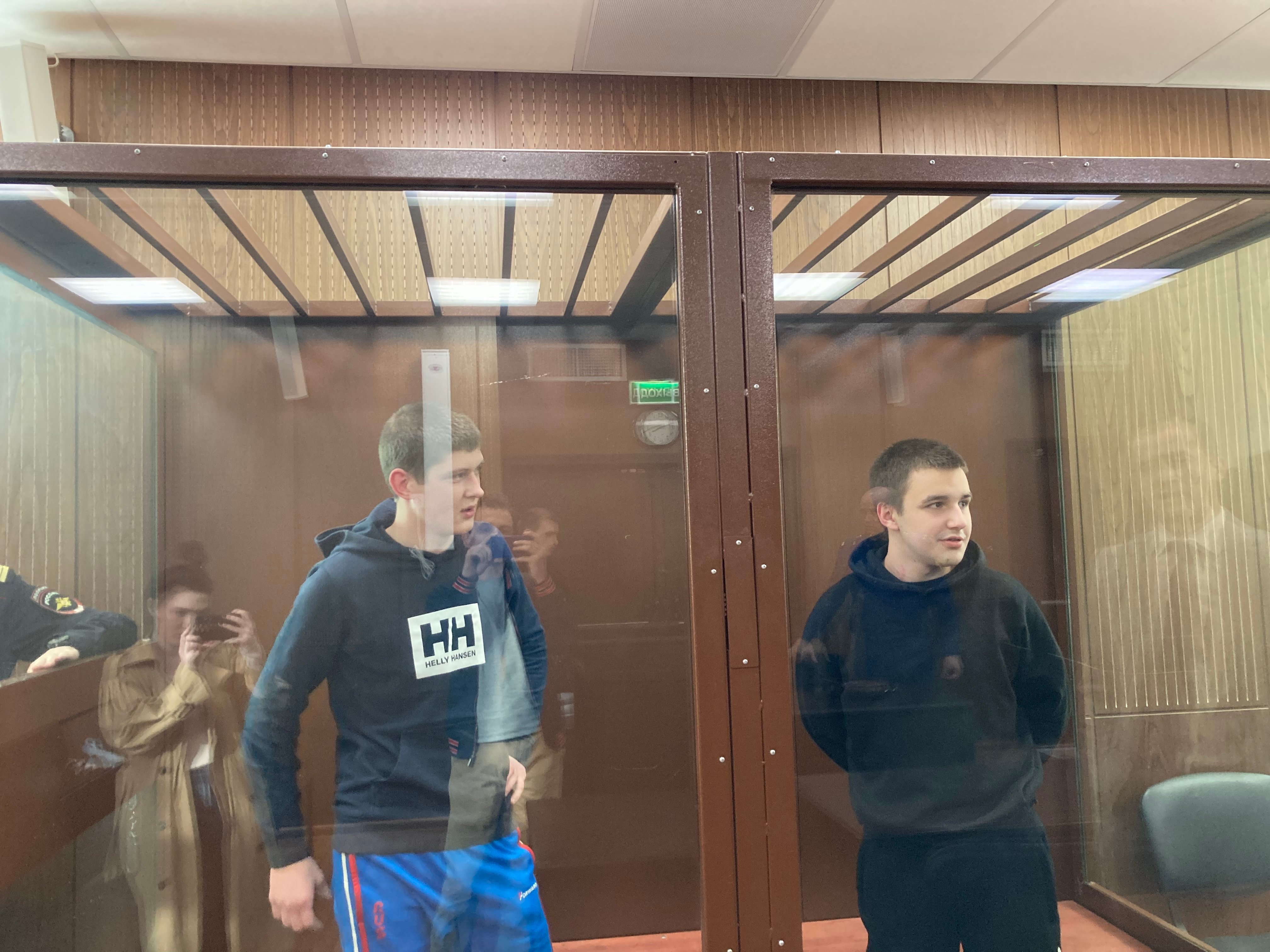 Сегодня Мещанский районный суд Москвы рассматривает ходатайство о продлении ареста обвиняемым. Следователь ФСБ, выступая с ходатайством, рассказал, что двоих уроженцев Витебска 2003 и 2004 годов рождения задержали 28 декабря 2022 года, на следующий день Орехово-Зуевский городской суд Московской области отправил их в СИЗО по обвинению в умышленном уничтожении имущества (часть 2 статьи 167 УК).