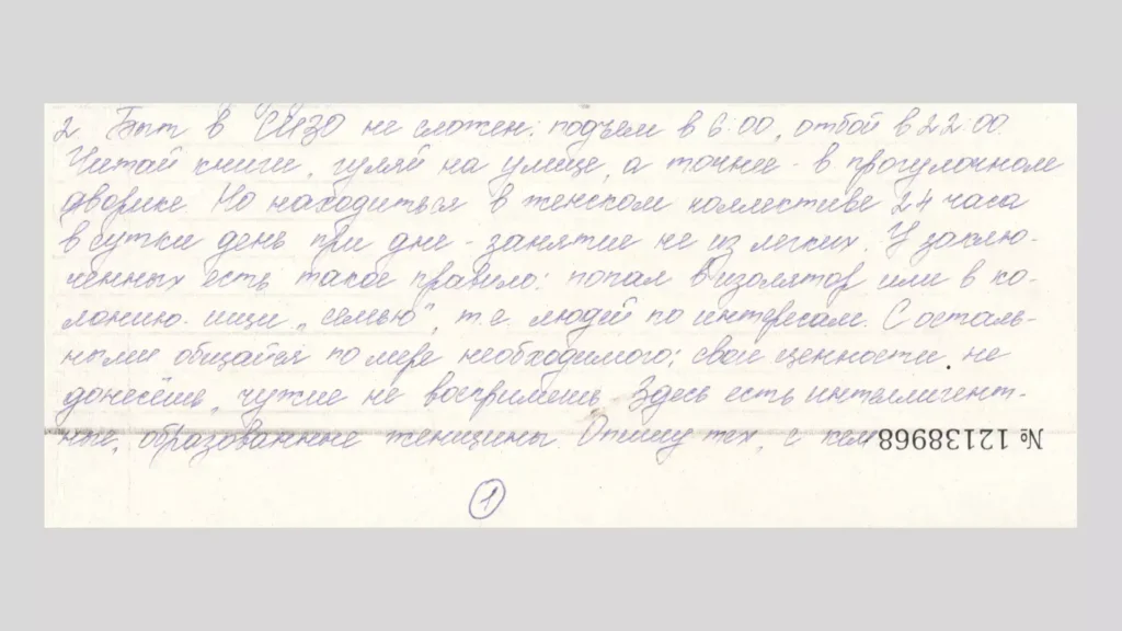 — Быт в СИЗО не сложен: подъём в 6:00, отбой в 22:00. Читай книги, гуляй на улице, а точнее — в прогулочном дворике. Но находиться в женском коллективе 24 часа в сутки день при дне — занятие не из лёгких. У заключённых есть такое правило: попал в изолятор или в колонию — ищи «семью», то есть людей по интересам. С остальными общайся по мере необходимого: свои ценности не донесёшь, чужие не воспримешь.