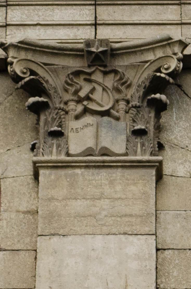 Капитель на фасаде ВолгГМУ.