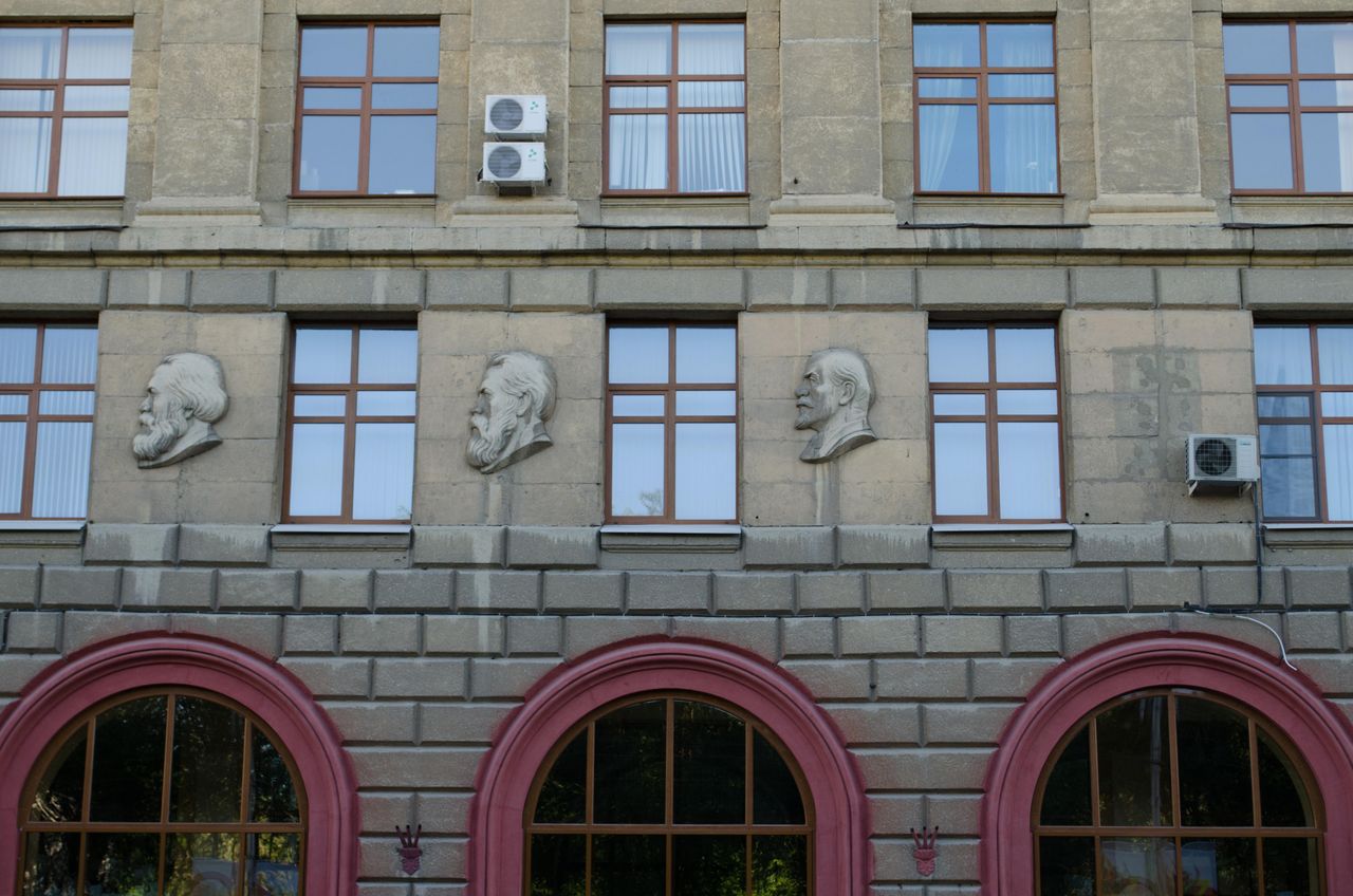 Изначально при обсуждении судьбы фасада в 2020 году реставратор_ки решили повесить информационную табличку о том, что на этом месте рядом с Марксом, Энгельсом и Лениным располагался барельеф Сталина. «Мы посчитали, что исчезновение барельефа со стороны главного фасада — тоже историческое событие. Оно нуждается в увековечивании», — прокомментировал тогда реставратор Сергей Сена.