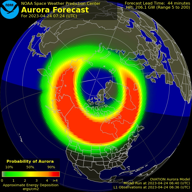 Полярные сияния, которые наблюдали жители Москвы, Франции, Польши, Мексики и других совсем не полярных мест в ночь на 24 апреля, возникли на фоне мощной магнитной бури в момент, когда глобальный оценочный индекс геомагнитной активности достигал 8 (9 — максимальный балл). Буря эта была вызвана вспышкой и корональным выбросом 21 апреля. Вспышка не была чрезмерно сильной, но она находилась почти точно на линии Солнце — Земля.