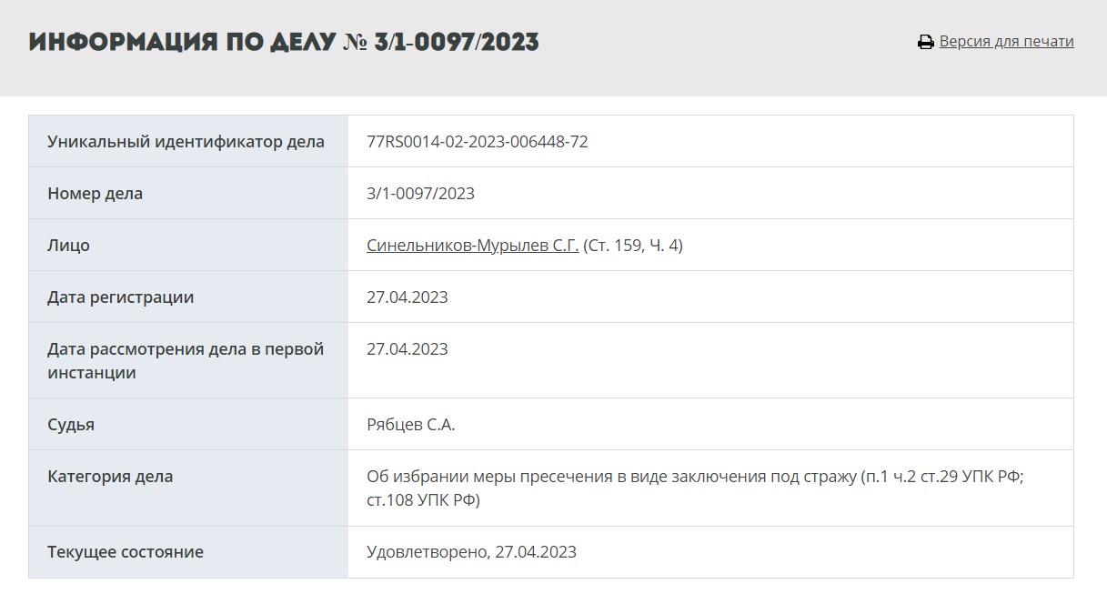 Как сообщается в телеграм-канале московских судов, Синельникова-Мурылева подозревают в хищении в особо крупном размере (часть 4 статьи 160 УК). При этом в карточке дела об избрании меры пресечения указана другая статья — о мошенничестве (часть 4 статьи 159 УК). ТАСС со ссылкой на правоохранительные органы также писал, что ректора подозревают в мошенничестве. Пресс-служба суда на звонки «Медиазоны» не ответила.