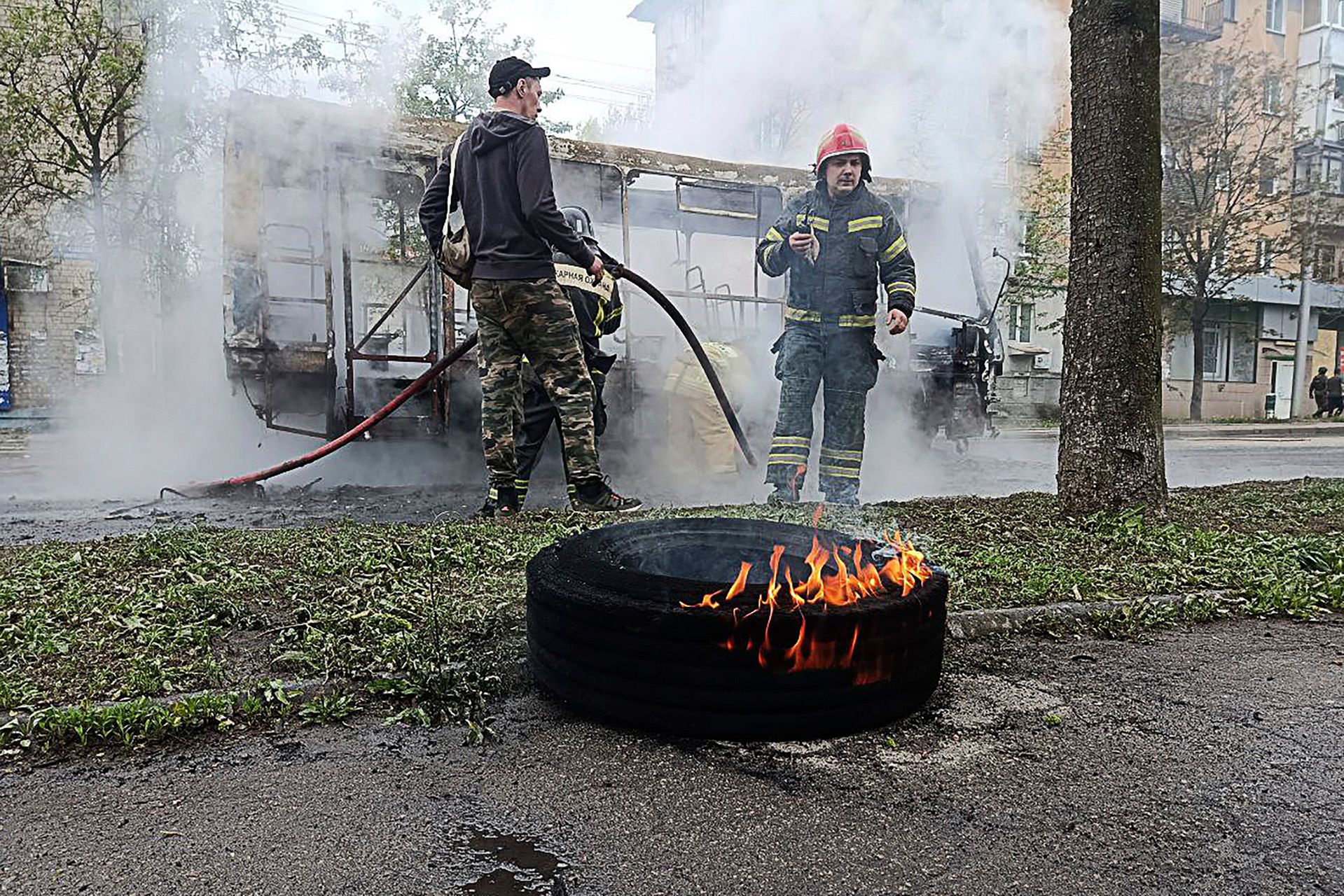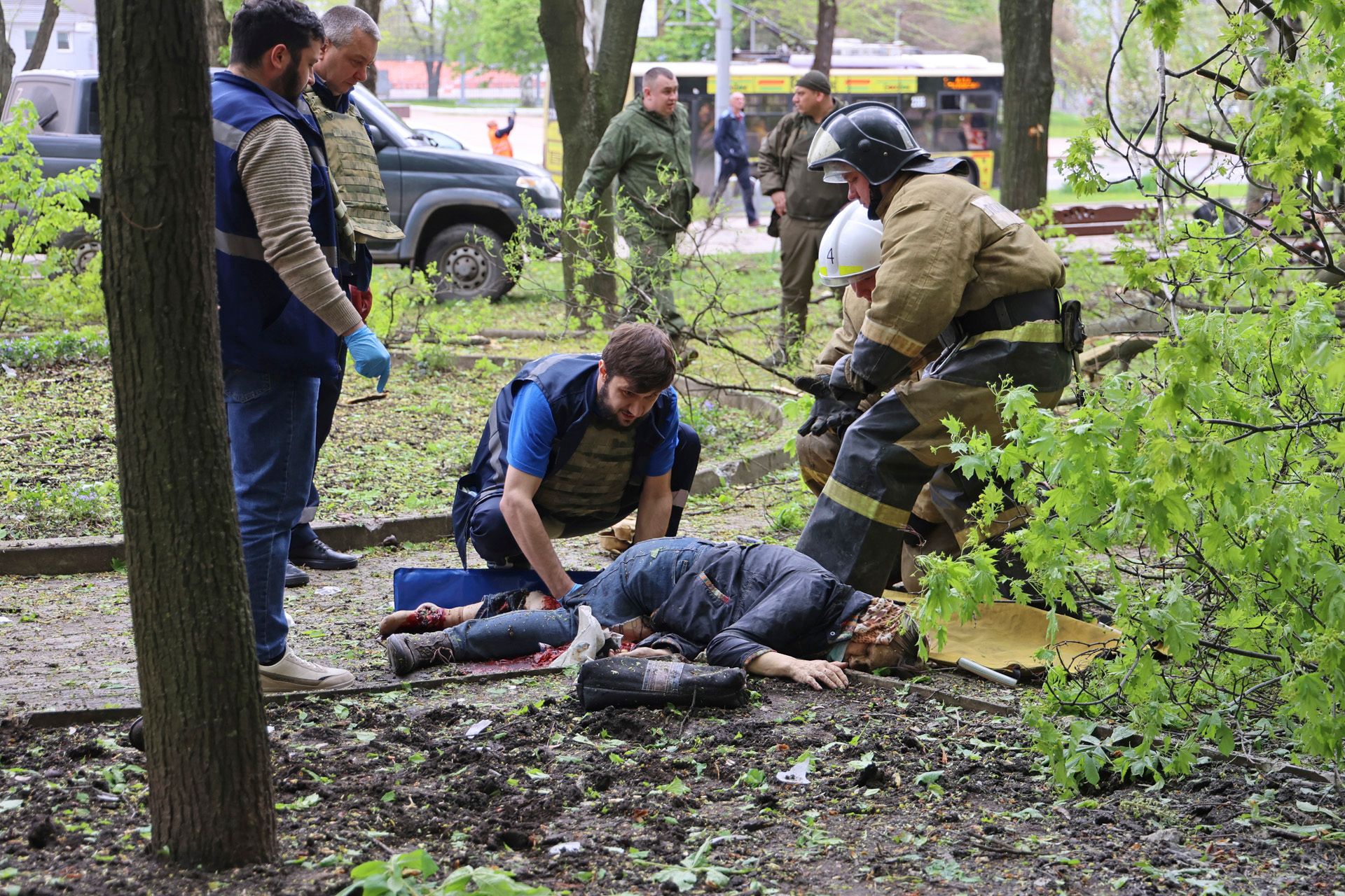 Глава аннексированной ДНР Денис Пушилин заявил 28 апреля, что украинские войска обстреляли центральные районы Донецка. Один из снарядов попал в маршрутку с людьми — автобус полностью сгорел, сообщил мэр аннексированного города Алексей Кулемзин. По последним данным, в городе погибли девять человек, 16 получили ранения. Кулемзин заявил, что среди погибших — восьмилетняя девочка. ВСУ не комментировали атаку на Донецк.