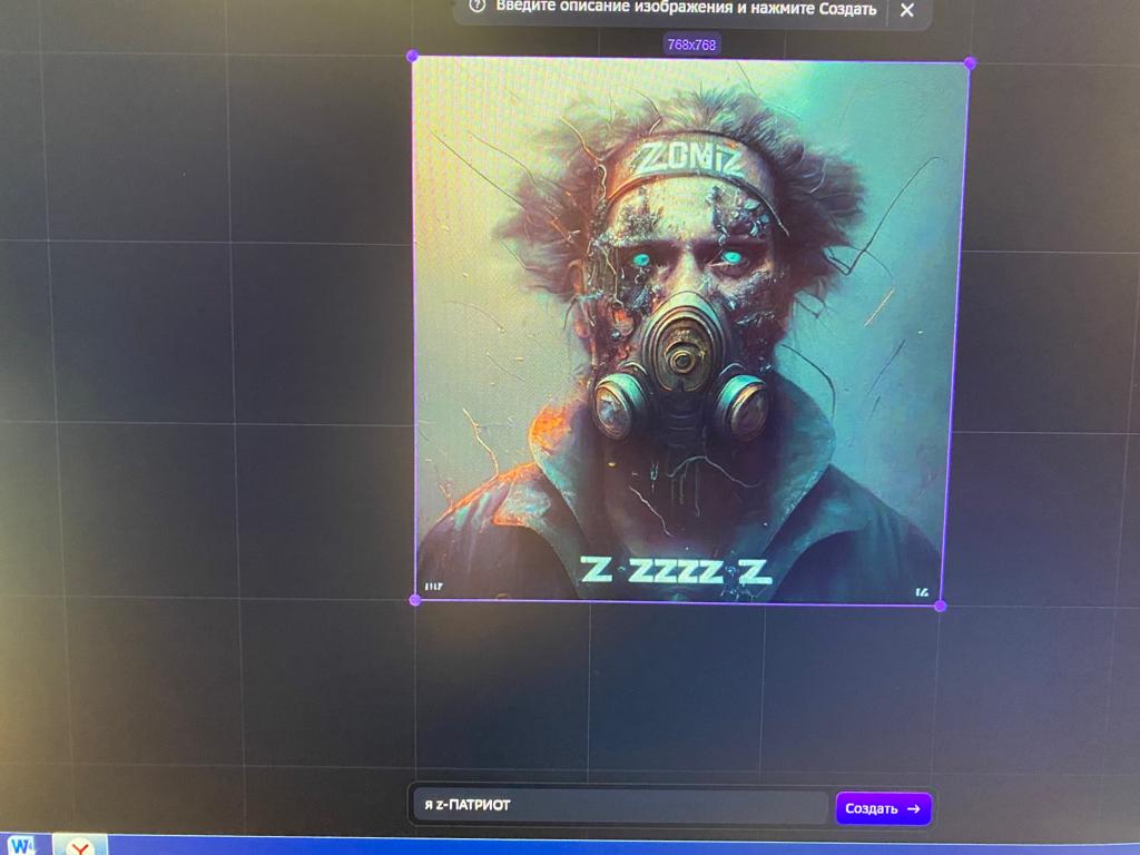 при запросе “я Z-патриот” сформировано изображение существа, напоминающего зомби».