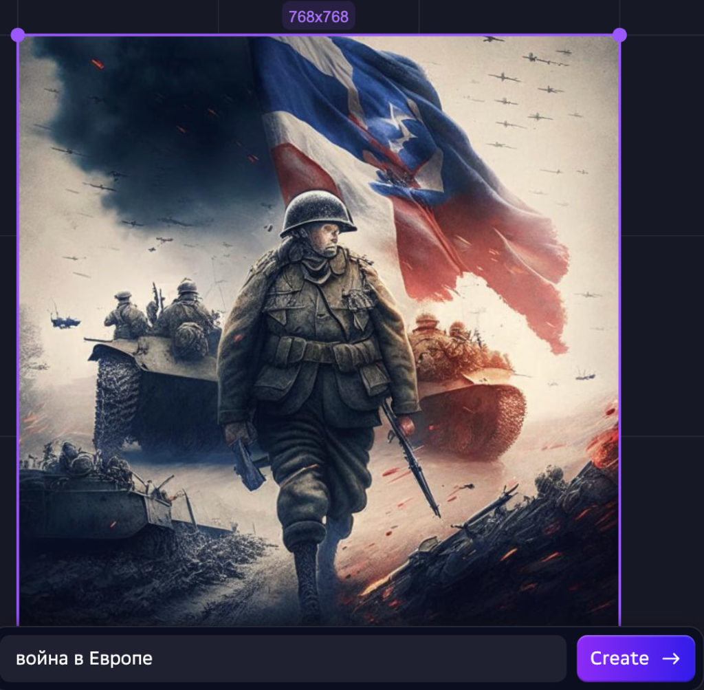Под частичный запрет попали запросы со словом «война» и «военный». Так, нейросеть отказывается генерировать релевантные изображения по запросам «специальная военная операция», «война в России», «военный преступник». В то же время запросы «война», «война в Америке» и «война в Европе» Kandinsky обрабатывает корректно.