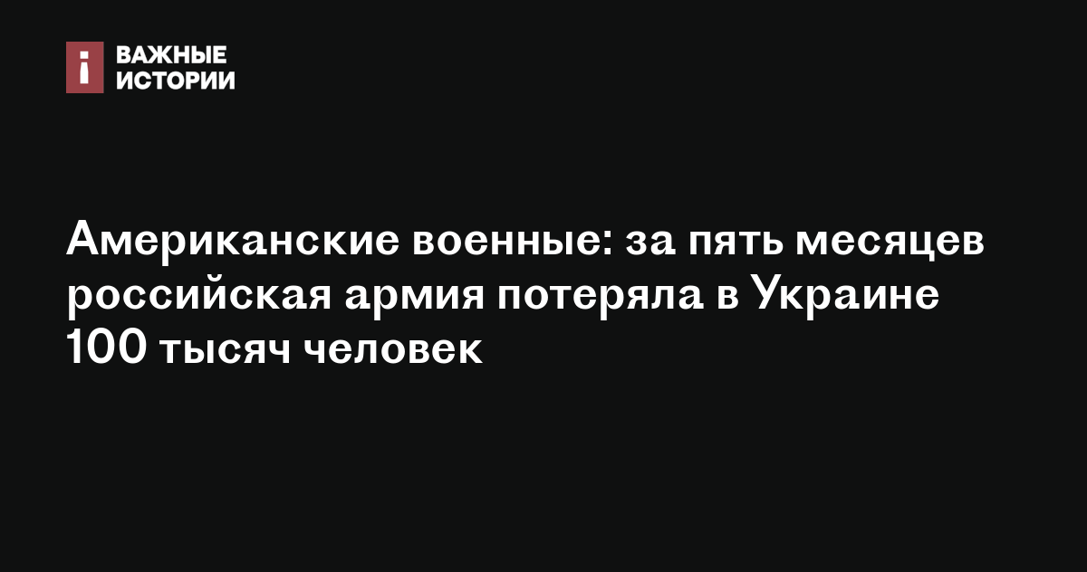 Американские военные: за пять месяцев российская армия потеряла в Украине 100 тысяч человек