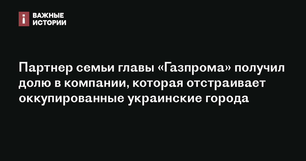 Партнер семьи главы «Газпрома» получил долю в компании, которая отстраивает оккупированные украинские города