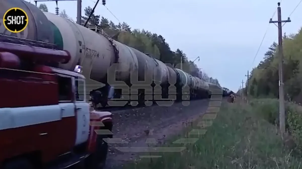 A total of 20 carriages of a freight train derailed between the stations of Snezhetskaya and Belye Berega in Russia’s Bryansk region due to a railroad track explosion, RBC cites Russian Railways; the news is also reported by Shot and 112 Telegram channels.