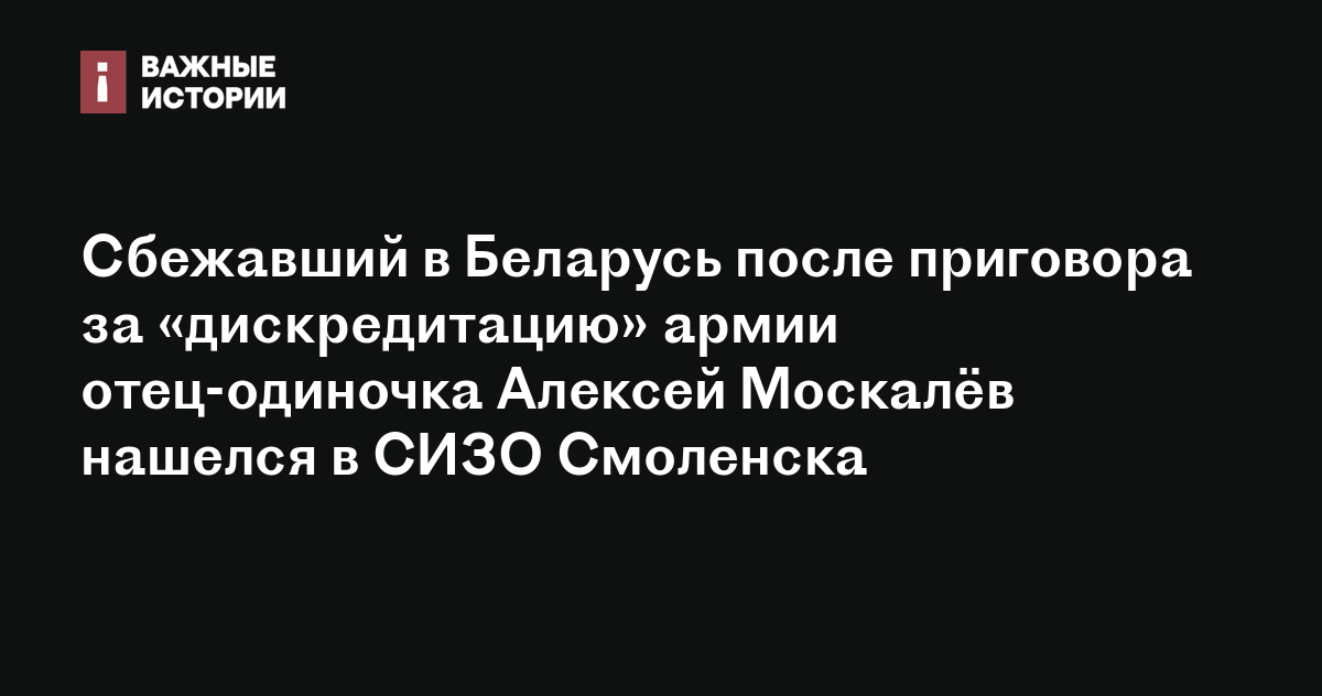 Сбежавший в Беларусь после приговора за «дискредитацию» армии отец-одиночка Алексей Москалёв нашелся в СИЗО Смоленска