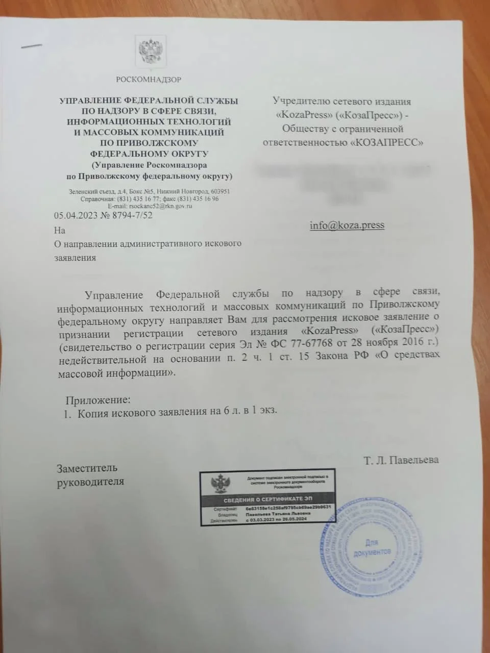 — Конкретно сейчас Роскомнадзор лишил нас лицензии СМИ. Но у нас и не было задачи продолжать выходить, потому что сейчас ни у какого СМИ нет шанса сказать правду. Наша задача была — сохранить сайт и соцсети, которые прилагаются к этому сайту.