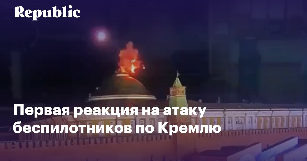 В ночь на 3 мая два беспилотника атаковали кремлевскую резиденцию Владимира Путина, сообщили в Кремле. Как минимум один дрон, судя по опубликованным видео, упал на купол Сенатского дворца. Российская сторона назвала эти действия покушением на президента РФ (такого сообщения в новейшей истории страны еще не было) и заявила, что «оставляет за собой право принять ответные меры там и тогда, где и когда посчитает нужным». Украинские власти отрицают причастность к этой атаке, заявляя, что настоящие теракты — это удары по Днепру и Умани, а то, что произошло в Москве — это «нагнетание ситуации перед 9 мая». В свою очередь прокремлевские политики, журналисты и пропагандисты уже предложили нанести удар по резиденции Владимира Зеленского в Киеве, считая, что произошедшее — это уже «не красная линия, а стоп-сигнал». Первая реакция на удар по Кремлю — в подборке Republic.