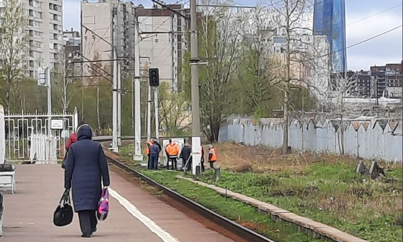 Рядом со станцией Старая Деревня читатель «Бумаги» заметил большое количество сотрудников железнодорожной линии.