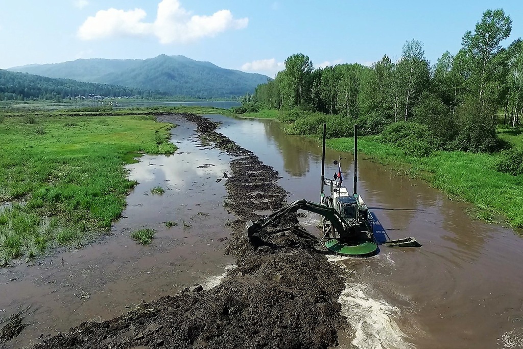 «Работы проводят земснарядом, с помощью которого ил вынимается из водоема и транспортируется на расположенные вне водоохранной зоны озера карты намыва (отстойники), где ил укладывается, осаживается, отстаивается. В итоге получается площадка, которую в дальнейшем можно использовать для хознужд», — говорили в пресс-службе администрации региона.