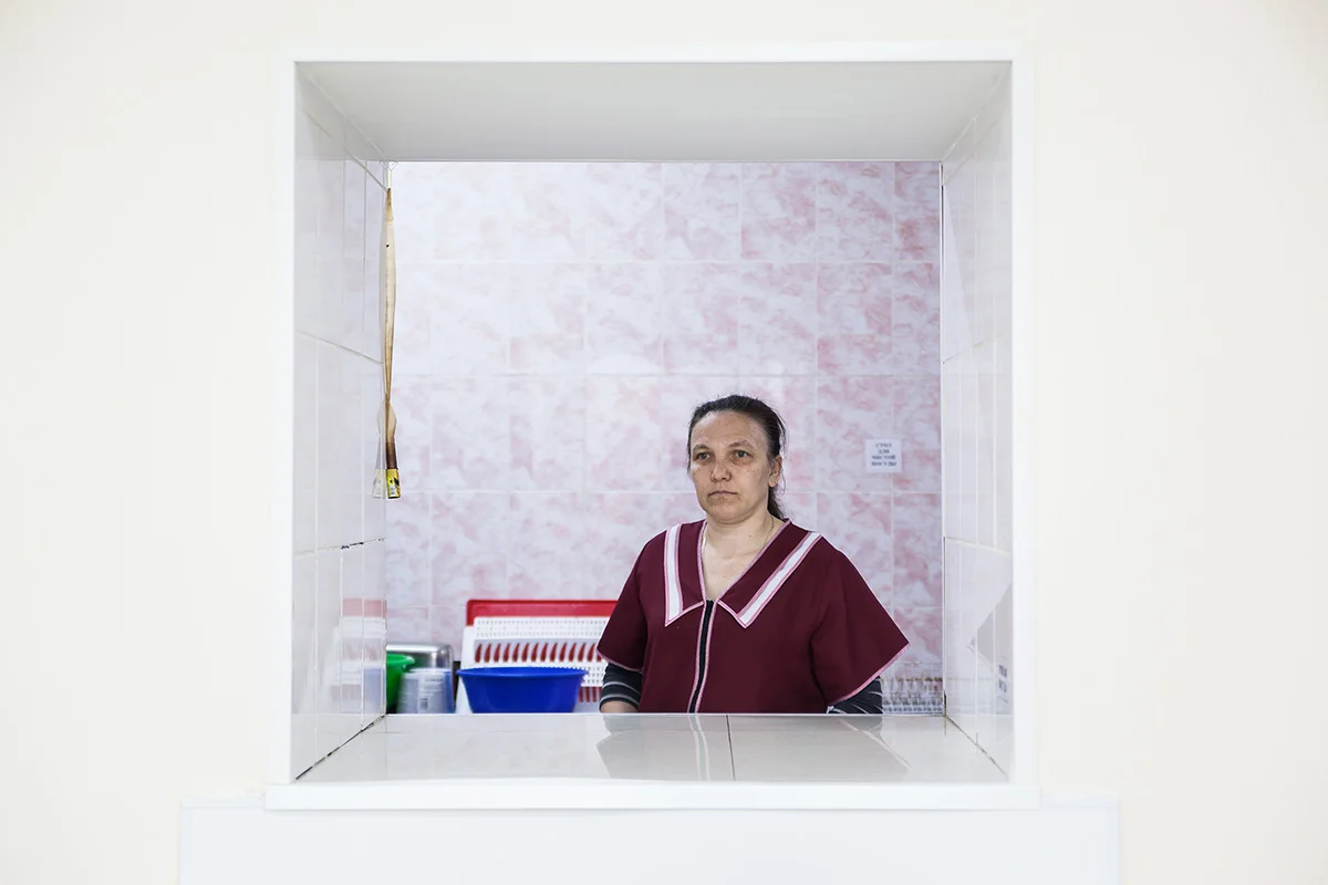 — Я работу свою люблю, — говорит 51-летняя медсестра больницы при колонии Елена Матвеева. — Ставим уколы, лечим, люди выздоравливают, помогаем. В деревне все любят нашу работу. Всем всё нравится. Нет, мрачность не ощущается.