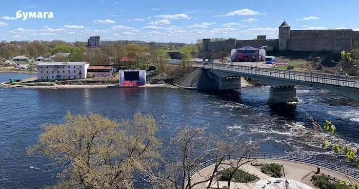 Накануне 9 мая на берегу реки Нарва в Ивангороде, на границе с Эстонией, появились экран и сцена. Они обращены к эстонской стороне — ее жителям будут видны торжества ко Дню Победы. На берегу перед Ивангородской крепостью, вокруг места установки экрана, вырубили вековые деревья. «Бумага» рассказывает, что происходит в приграничных городах.