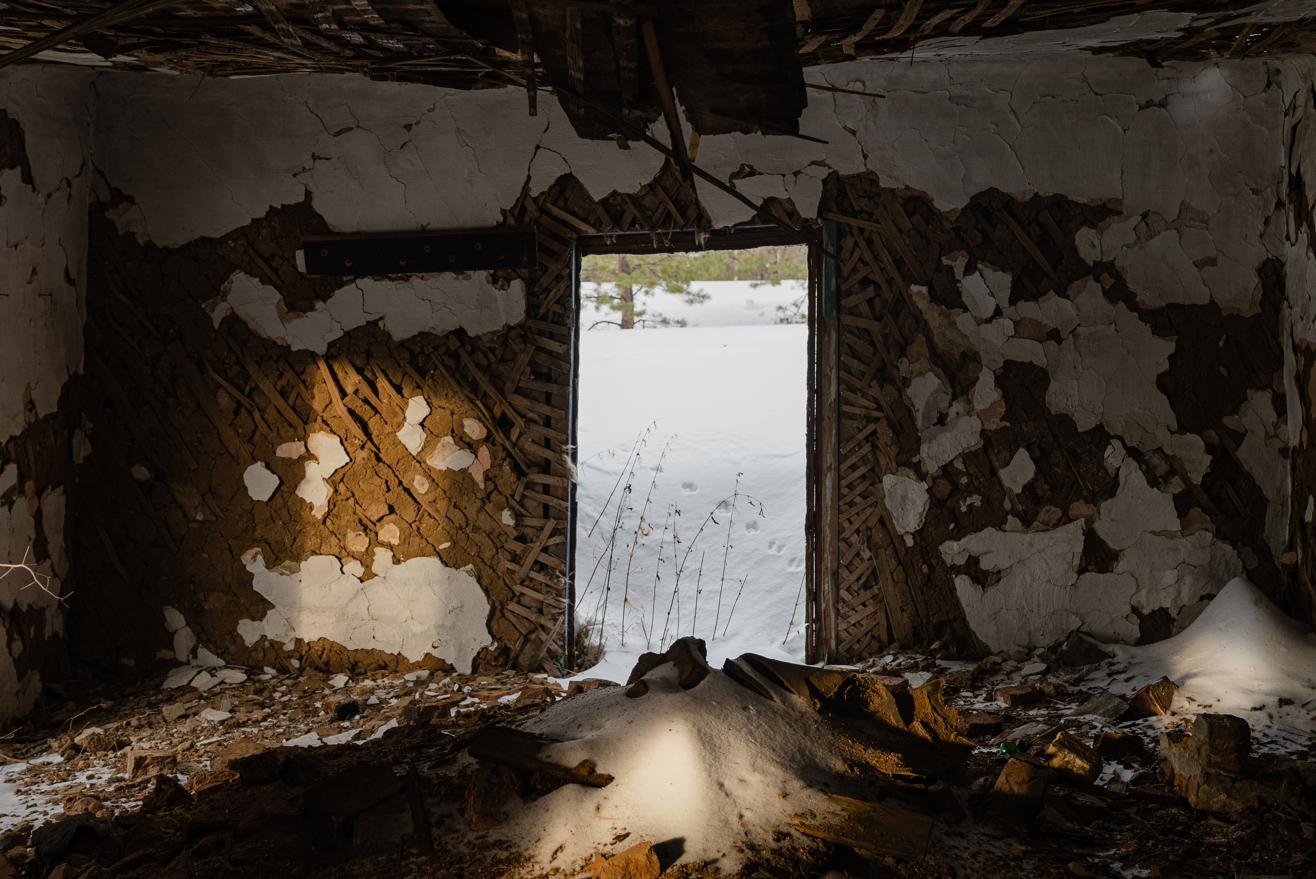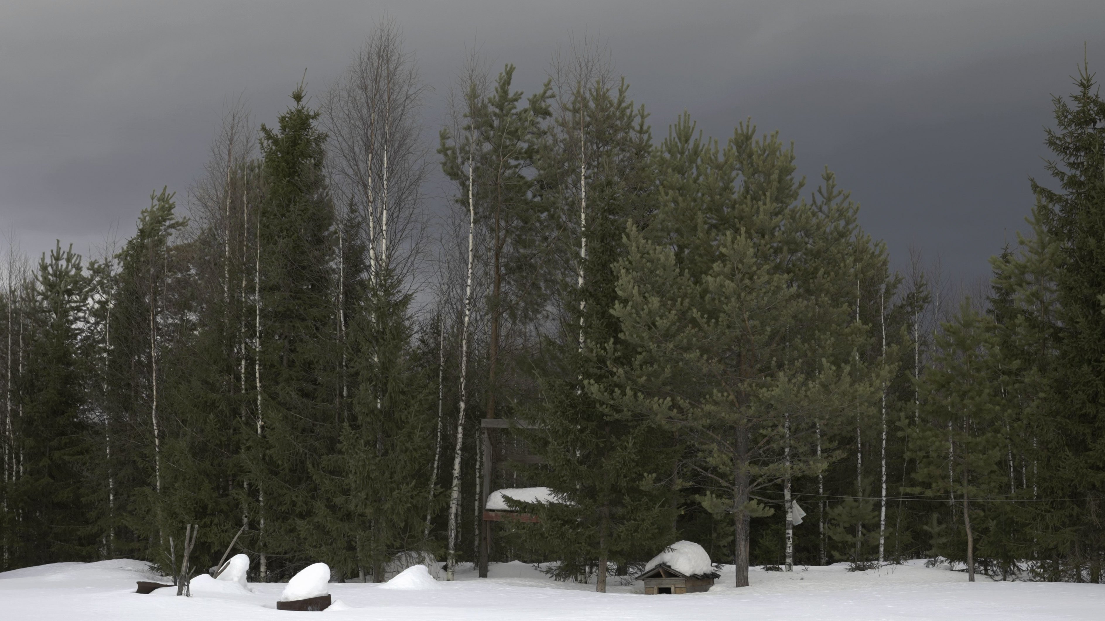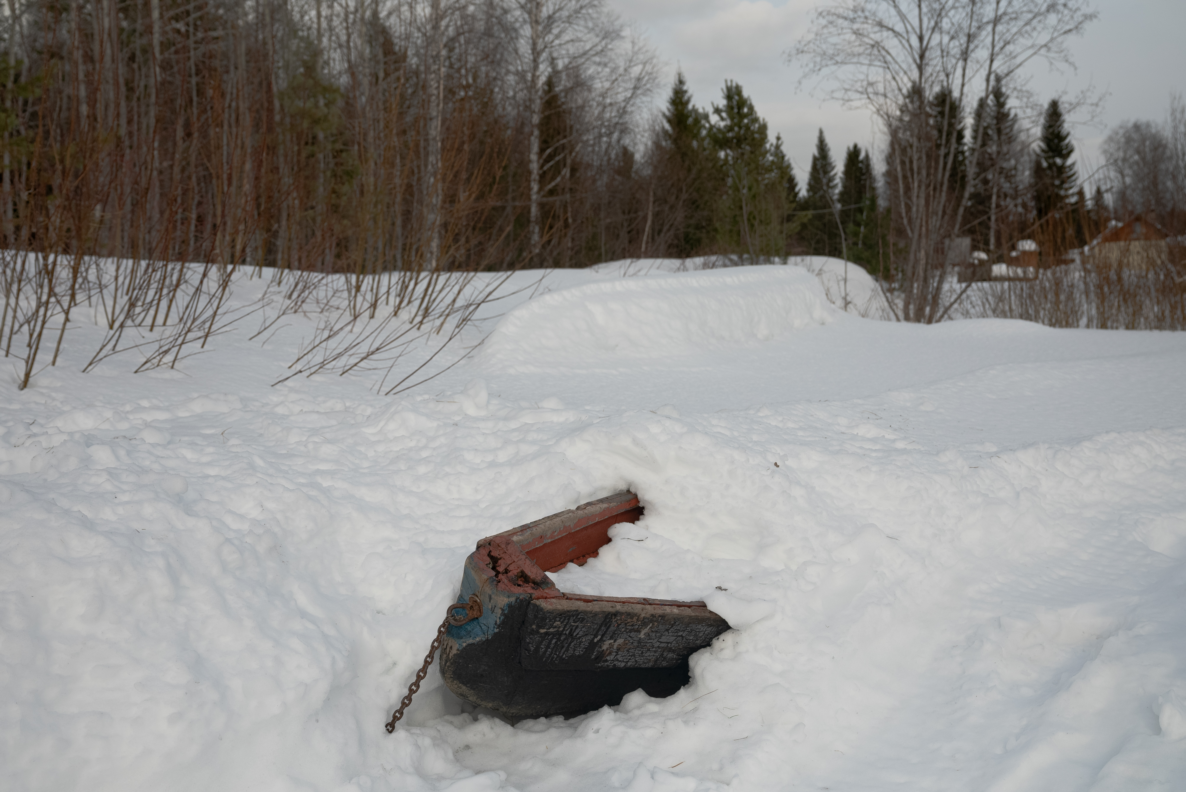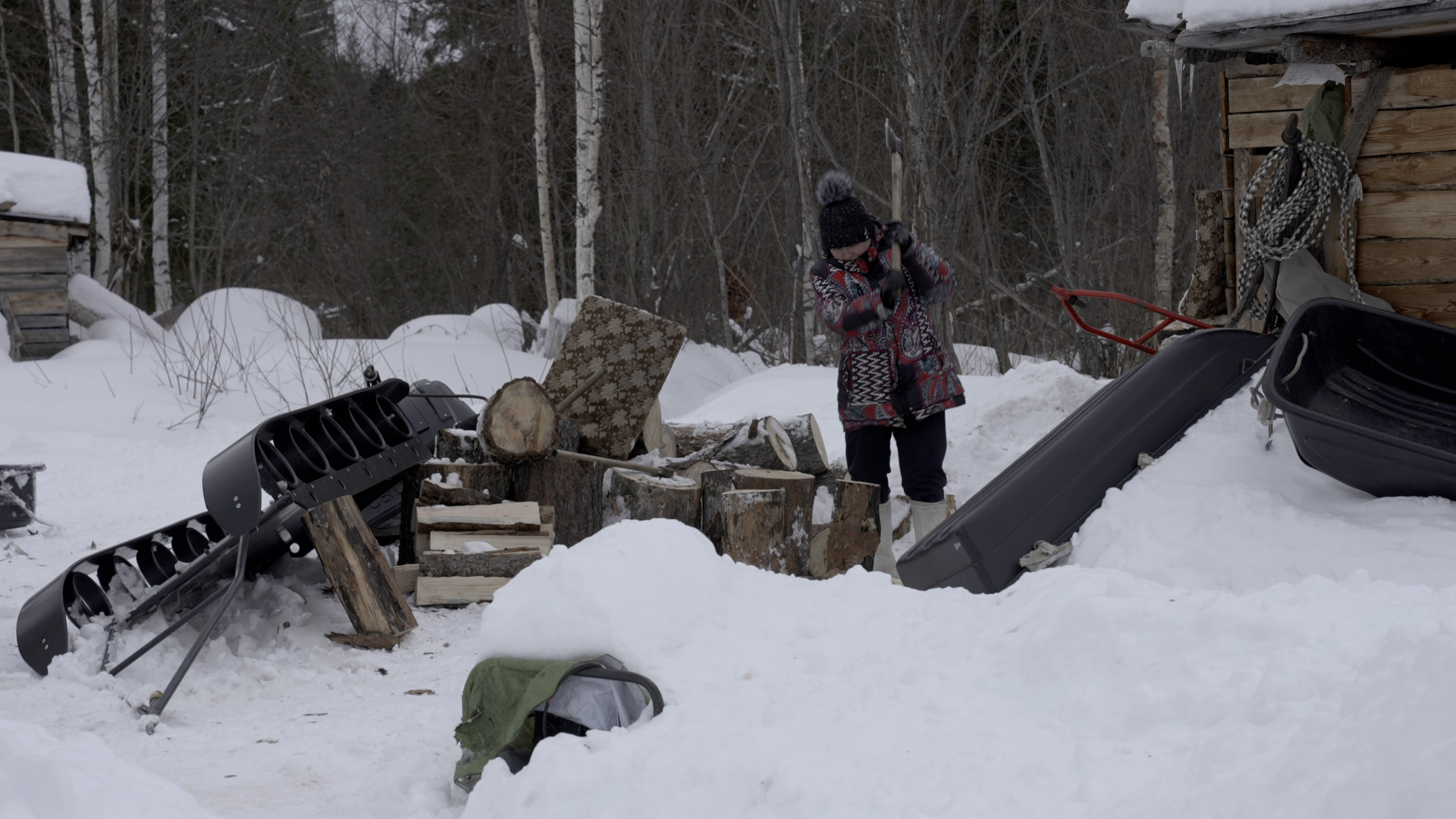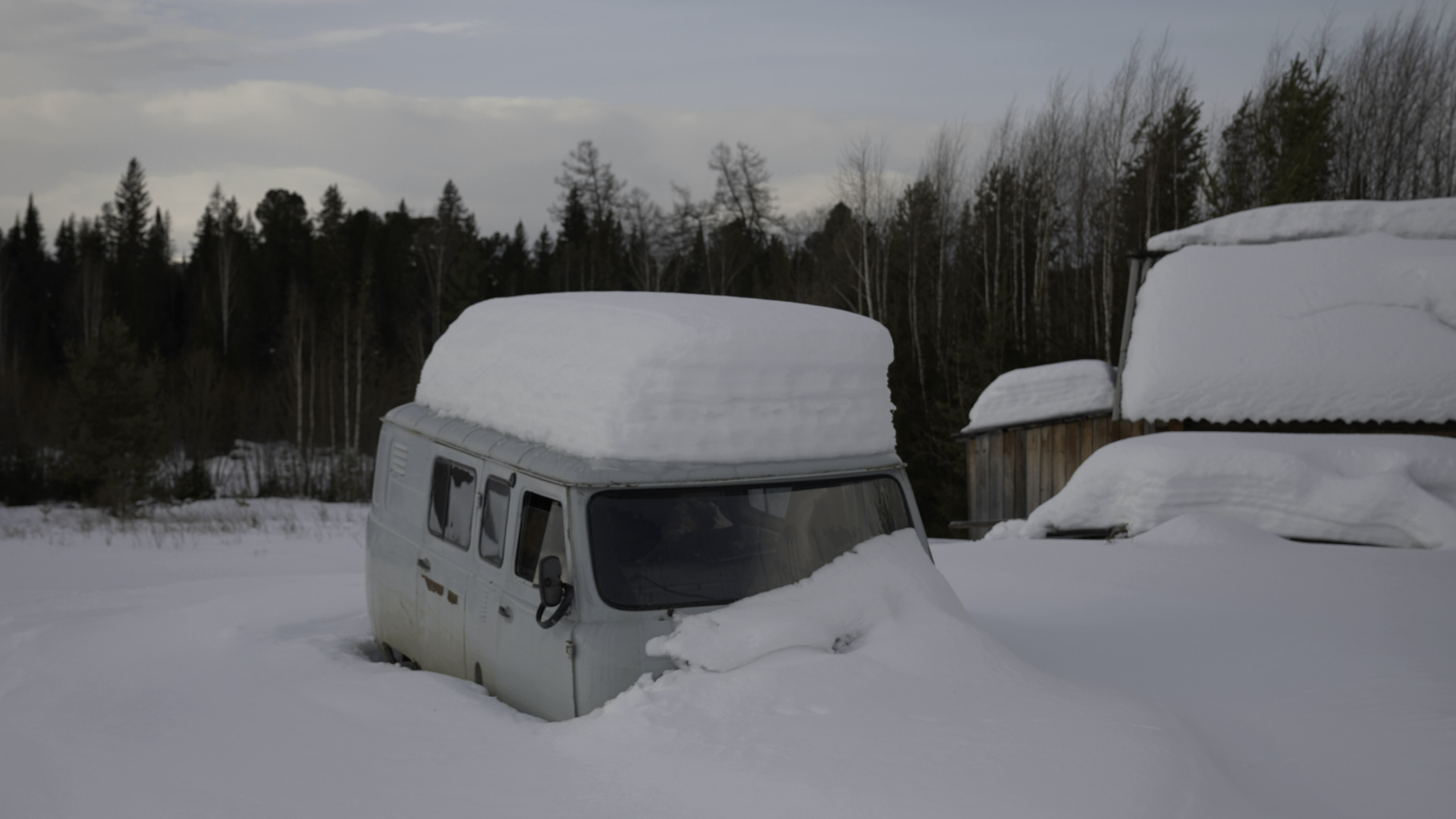 ГАЗ довозит пассажиров до замерзшей реки. Моста нет, и последние километры Наталья с "корреспондентом" преодолевают на снегоходе. Он останавливается у желтого домика из профлиста, в котором живет Анямов. Рядом – утонувший в снегу уазик-буханка, набитый до крыши ветхим хламом, останки мертвой техники, торчащий нос невидимой под сугробом лодки и спутниковый телефон на солнечных батареях.