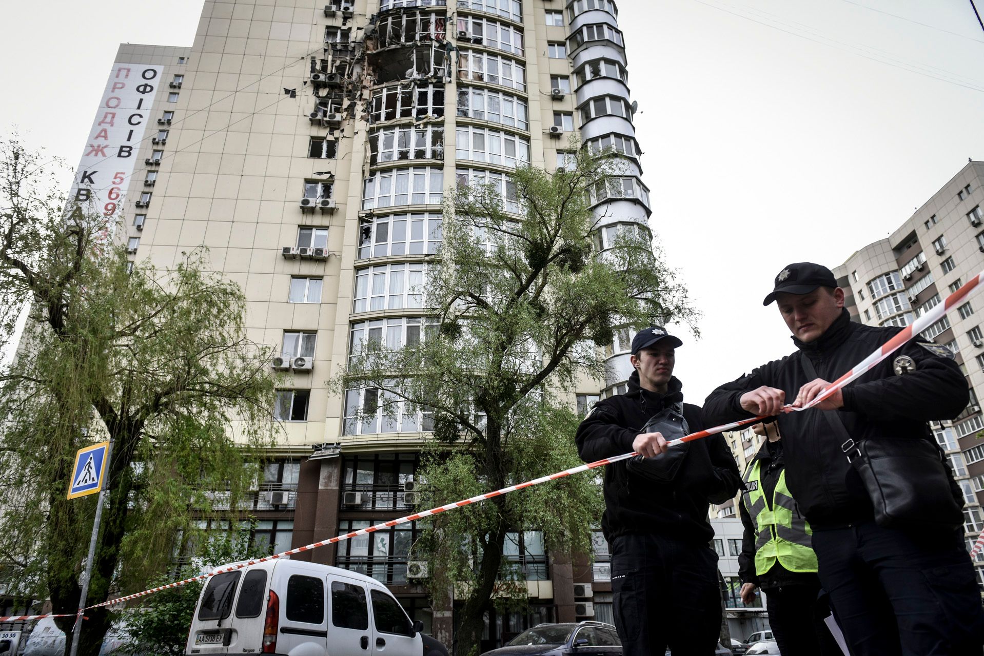 В Киеве, по данным местных властей, пострадали пять человек, повреждены автомобили и жилой дом в Святошинском районе в западной части города.