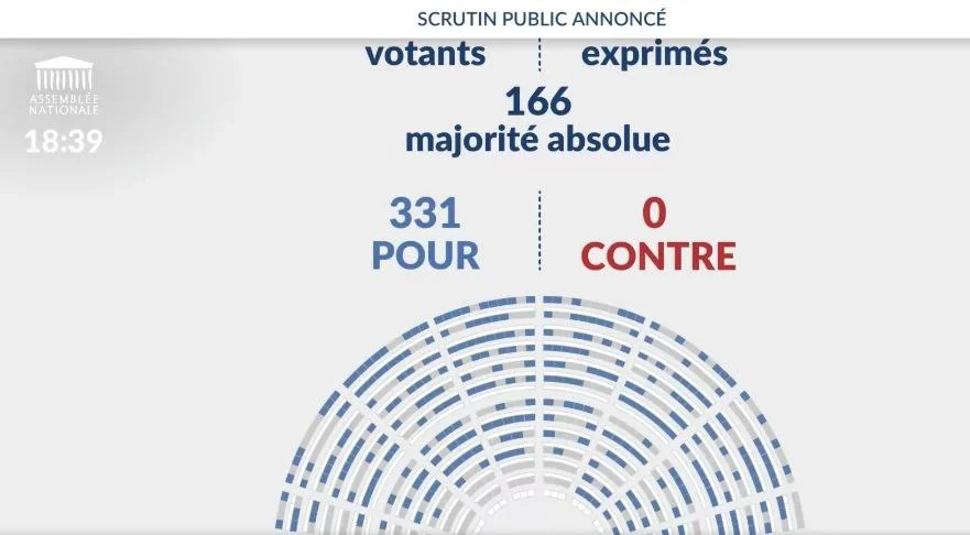В итоге «за» принятие резолюции проголосовал 331 член нижней палаты парламента Франции, против — 0.