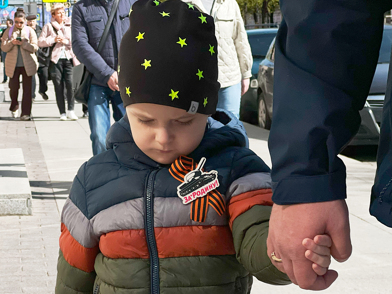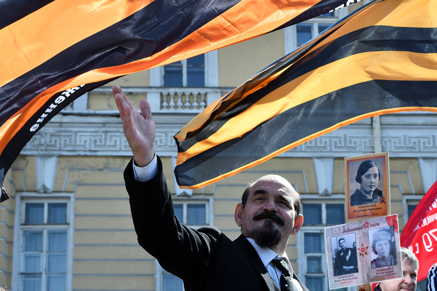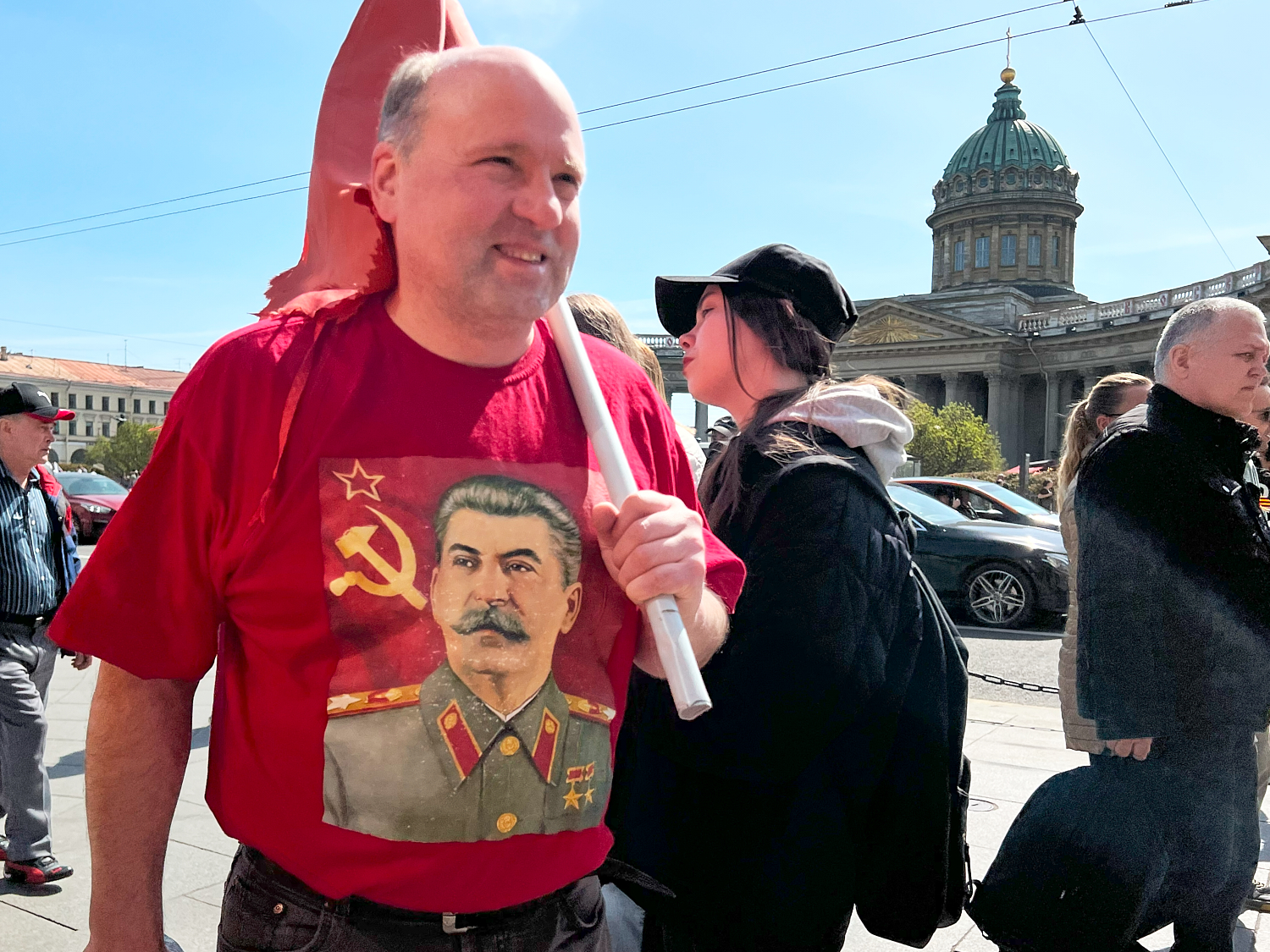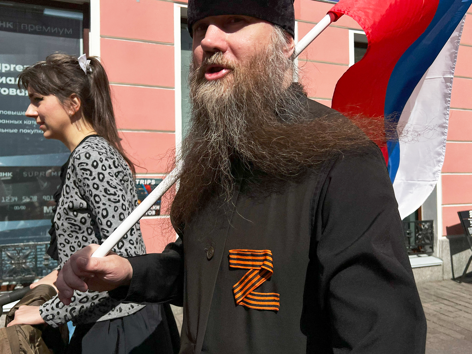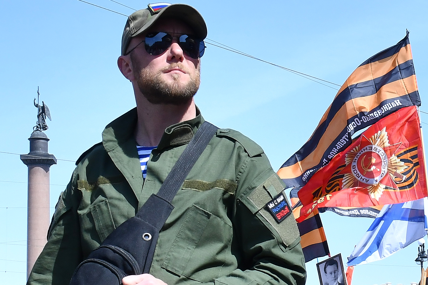 На Невском проспекте образовалось стихийное шествие «Бессмертного полка». Среди шествующих были участники Национально-освободительного движения и горожане в одежде с нашивками ЧВК «Вагнер», а также буквами Z и V.