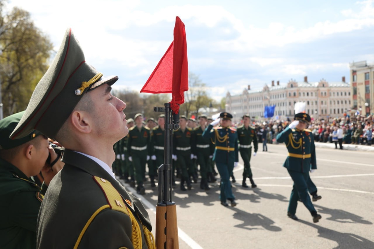 В Вологде на парад Победы собрались сотни жителей, отчитался в своем телеграм-канале губернатор региона Олег Кувшинников. Многие из них привели с собой детей с георгиевскими ленточками. Губернатор заявил, что его это "трогает".