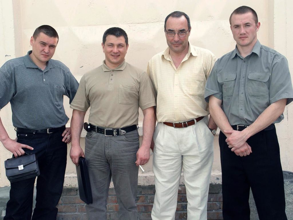 Слева направо: Александр Калаганский, Эдуард Ульман, адвокат Роман Кржачковский, Владимир Воеводин. Май 2005 года. Фото: Василий Дерюгин / Коммерсантъ
