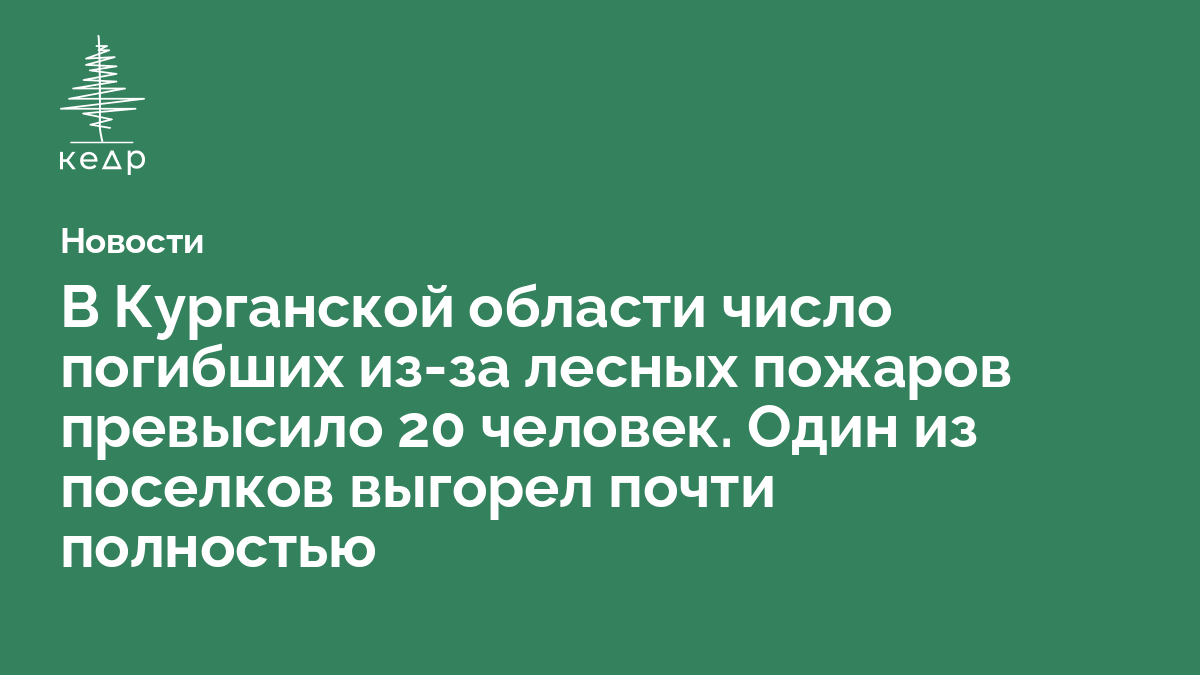 В Курганской области число погибших из-за лесных пожаров превысило 20 человек. Один из поселков выгорел почти полностью