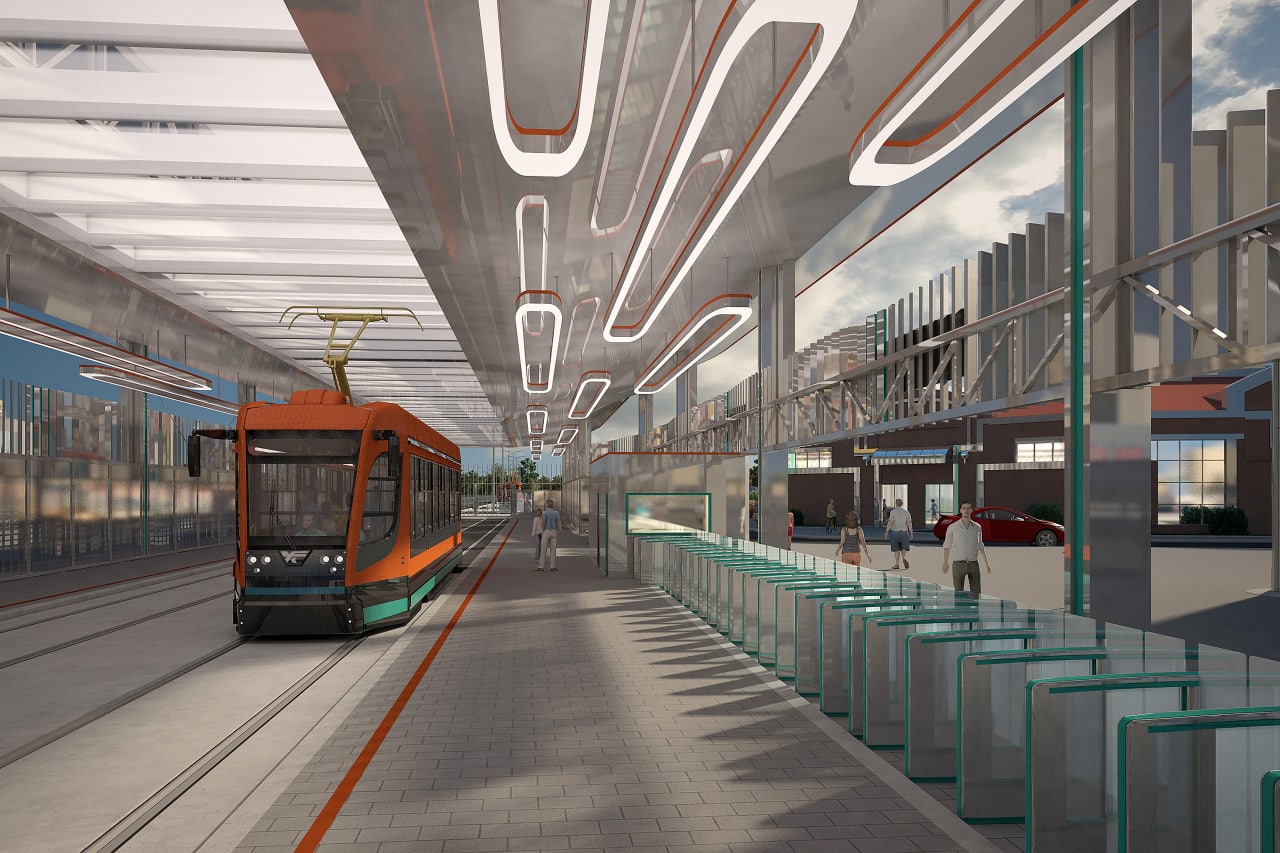 «На Балканской площади в [районе станции метро] „Купчино“ пассажиры будут садиться в трамвай и выходить из него в крытом павильоне. Это будет первый в России трамвайный вокзал», — заявил губернатор Петербурга Александр Беглов.