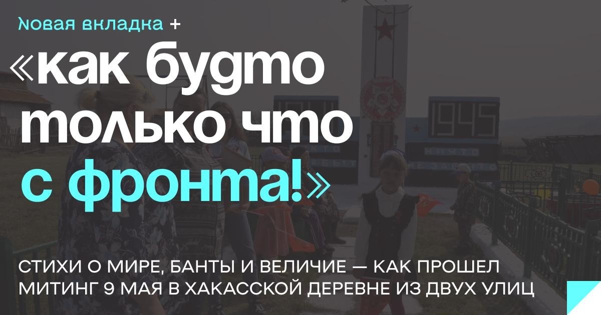 Марчелгаш — маленькое село в Республике Хакасия. В нём всего две улицы, начальная школа, фельдшерский пункт, два магазина и клуб. 9 мая 2023 года здесь, как и по всей России, прошёл митинг. Автор этого текста Марина Сенинг прожила в Марчелгаше 18 лет. Она приехала в родное село к маме на праздник — и рассказывает, как маленькая деревня в Южной Сибири встречает День Победы в военное время.