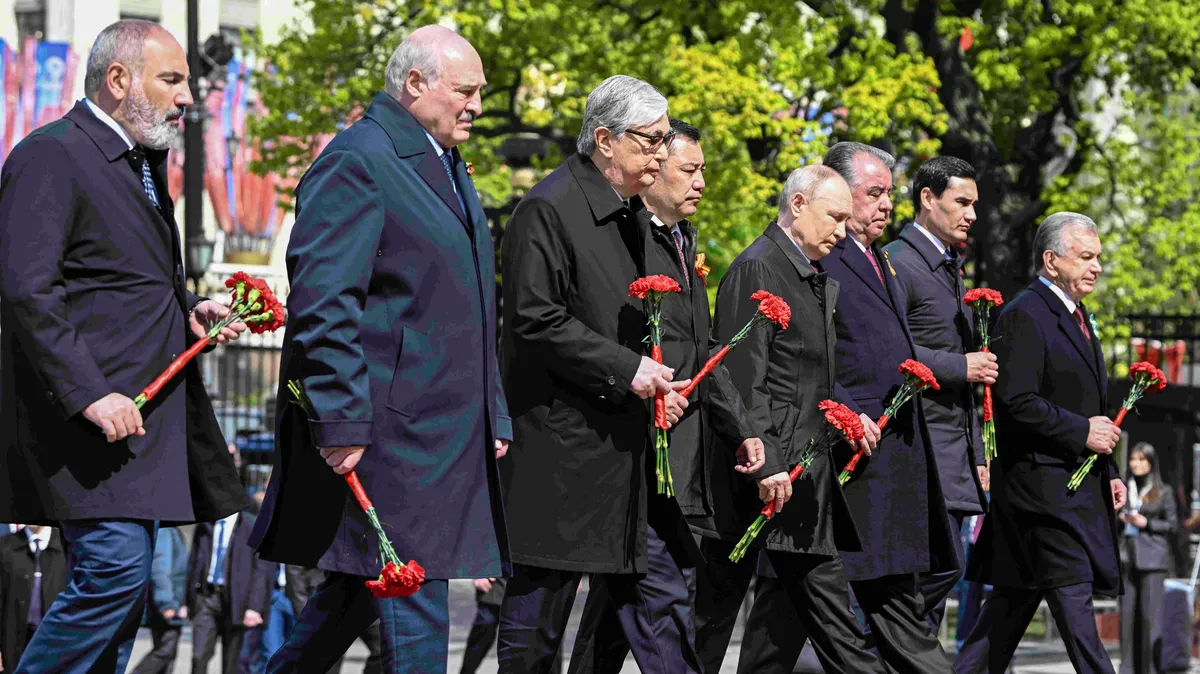9 мая в Москве прошел парад Победы в Великой Отечественной войне. На мероприятии присутствовали лидеры семи иностранных государств: президент Казахстана Касым-Жомарт Токаев, президент Кыргызстана Садыр Жапаров, президент Узбекистана Шавкат Мирзиёев, президент Таджикистана Эмомали Рахмон, президент Туркменистана Сердар Бердымухамедов, премьер Армении Никол Пашинян и Александр Лукашенко. Такое количество иностранных гостей стало неожиданностью — изначально предполагалось, что приедет только глава Кыргызстана. «Новая газета Европа» разбирается в том, как и зачем лидеры стран СНГ съехались на парад Победы во время войны с соседним государством.