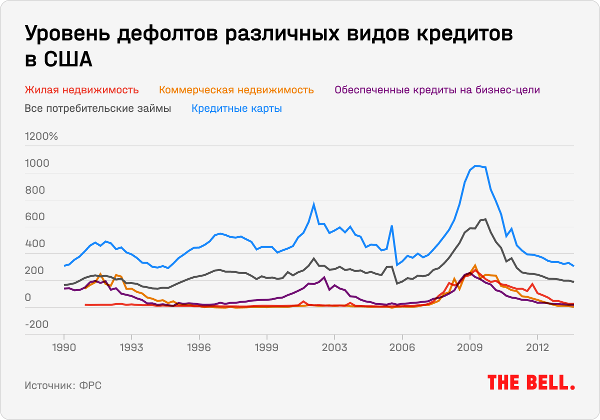 Источником финансовых кризисов практически всегда оказываются кредиты с низким уровнем риска, обеспеченные залогом. Так было в 2008-м (жилая недвижимость), в начале 90-х (коммерческая недвижимость), в 80-х (корпоративное кредитование под залог активов бизнеса). Тогда они становились не причинами рецессий, а именно источниками проблем банков, которые усугубляли или провоцировали кризис в экономике.