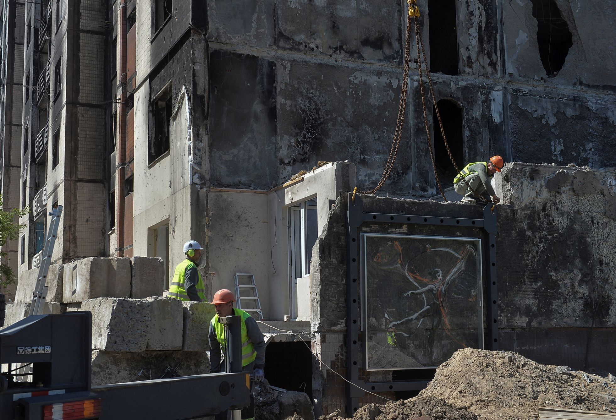 В Ирпене сносят полуразрушенную многоэтажку с граффити Бэнкси. Само граффити сохранят