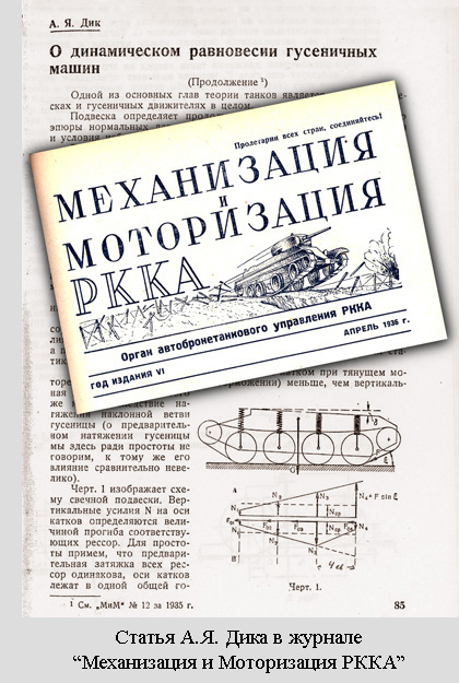 – Адольф Дик начал заниматься проблемами повышения подвижности танков еще во время обучения на конструкторском факультете ВАММ РККА. Его статьи по этой теме были опубликованы в 1935 и 1936 годах в журнале "Механизация и моторизация РККА", – рассказывает Игорь Желтов, полковник запаса, автор наиболее авторитетных работ по истории танка Т-34 и советской бронетехники. – В ноябре 1936 года чертежи и объяснительная записка к проекту коробки скоростей из дипломного проекта Дика были направлены руководством АБТУ РККА в конструкторское бюро Харьковского паровозостроительного завода как заслуживающие внимания и рассмотрения. А в январе следующего года военинженер 3-го ранга Адольф Дик был зачислен на должность адъюнкта по кафедре "Танков и тракторов" ВАММ РККА.