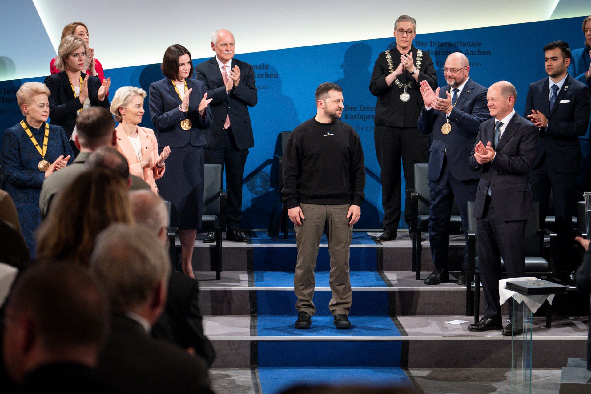 - Светлана Тихановская и Владимир Зеленский встретились на церемонии вручения премии Карла Великого в Германии и пожали друг другу руки.