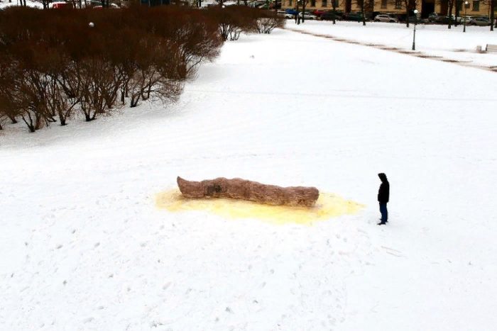 В отношении Волкова силовики возбудили уголовное дело о надругательстве над местами захоронения. По версии следствия, разместив арт-объект из снега в виде фекалии в луже желтого цвета, художник поступил «цинично» и «безнравственно».