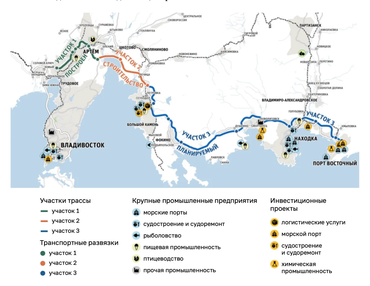 Находка — третий по величине город Приморского края и развитый порт. По пути сюда из Владивостока расположен город Большой Камень с судоверфью «Звезда», где строятся суда для «Роснефти» и «Газпрома», и заводом «Звезда», где ремонтируются атомные подводные лодки. «Основной задачей строительства является обход населенных пунктов с обеспечением роста интенсивности движения к 2033 году по сравнению с 2012 годом более чем в три раза», — напомнили в Счетной палате.