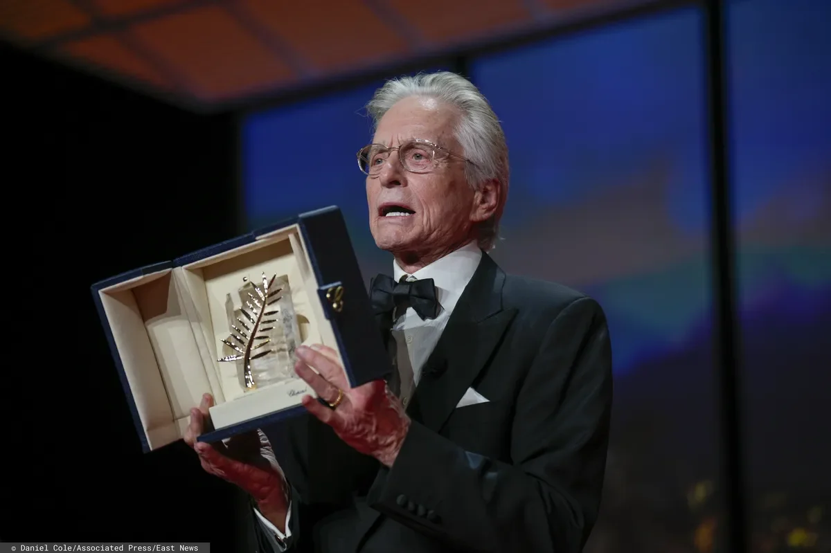 Дуглас, пришедший на церемонию со своей женой Кэтрин Зета-Джонс и красавицей дочерью Кэрис, хорошо выглядит. 78-летний актер шутит о возрасте и благодарит за награду: