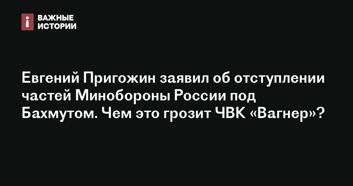 Евгений Пригожин заявил об отступлении частей Минобороны России под Бахмутом. Чем это грозит ЧВК «Вагнер»?