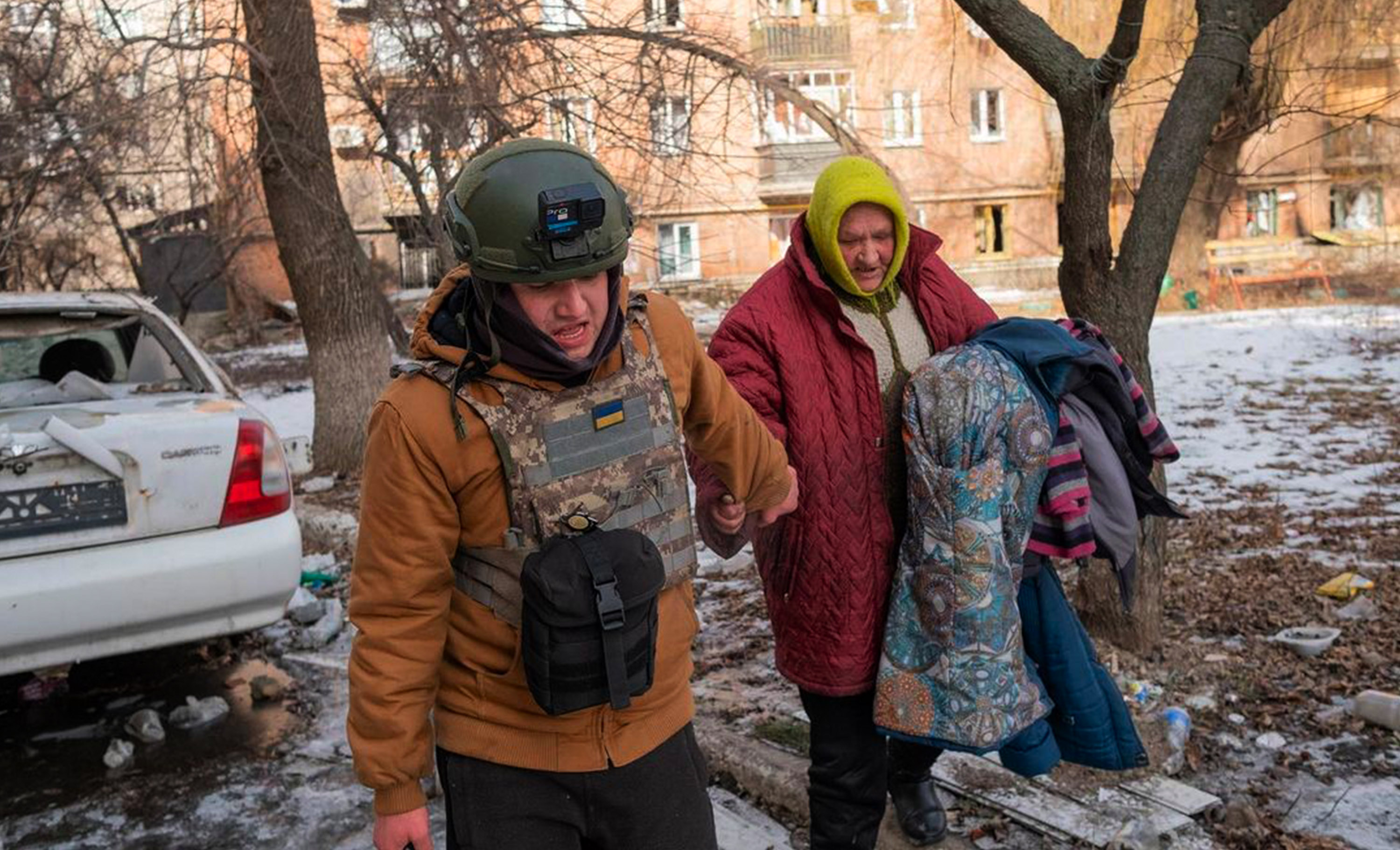 Nikolay helps a resident of Bakhmut leave the city, 24 February 2023. Photo: @nikolay_offline / Instagram