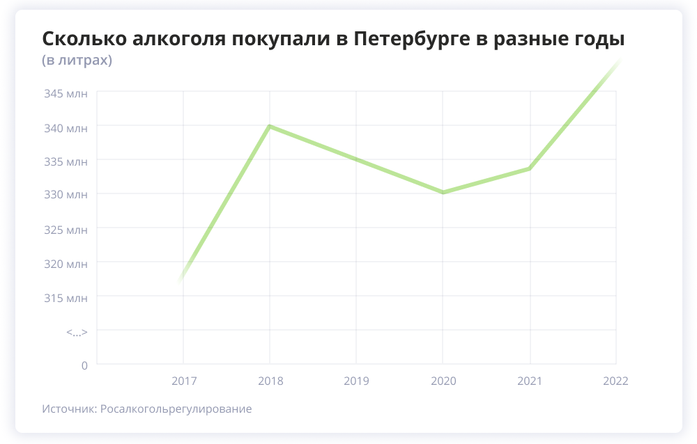 В 2022 году продажи алкоголя в Петербурге выросли на 4,8 %, хотя до этого они скорее сокращались. Больше всего вырос спрос на дешевые и крепкие российские напитки, которые заняли место ушедших иностранных производителей. Вместе с этим в Петербурге растет выявляемость алкогольной зависимости.