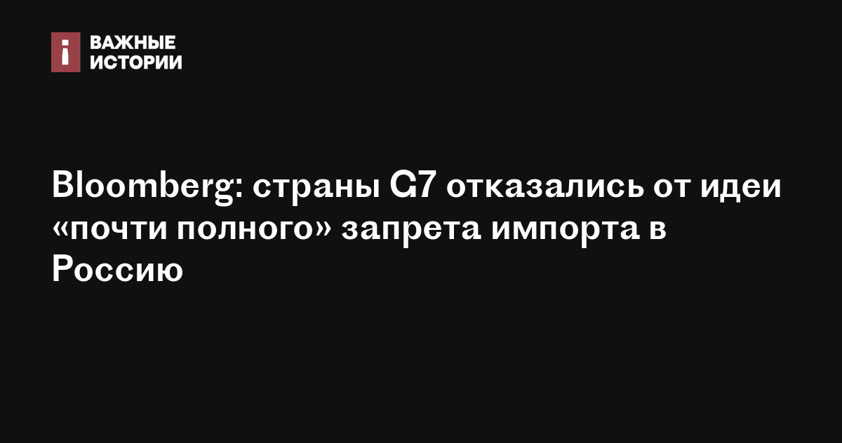 Bloomberg: страны G7 отказались от идеи «почти полного» запрета импорта в Россию