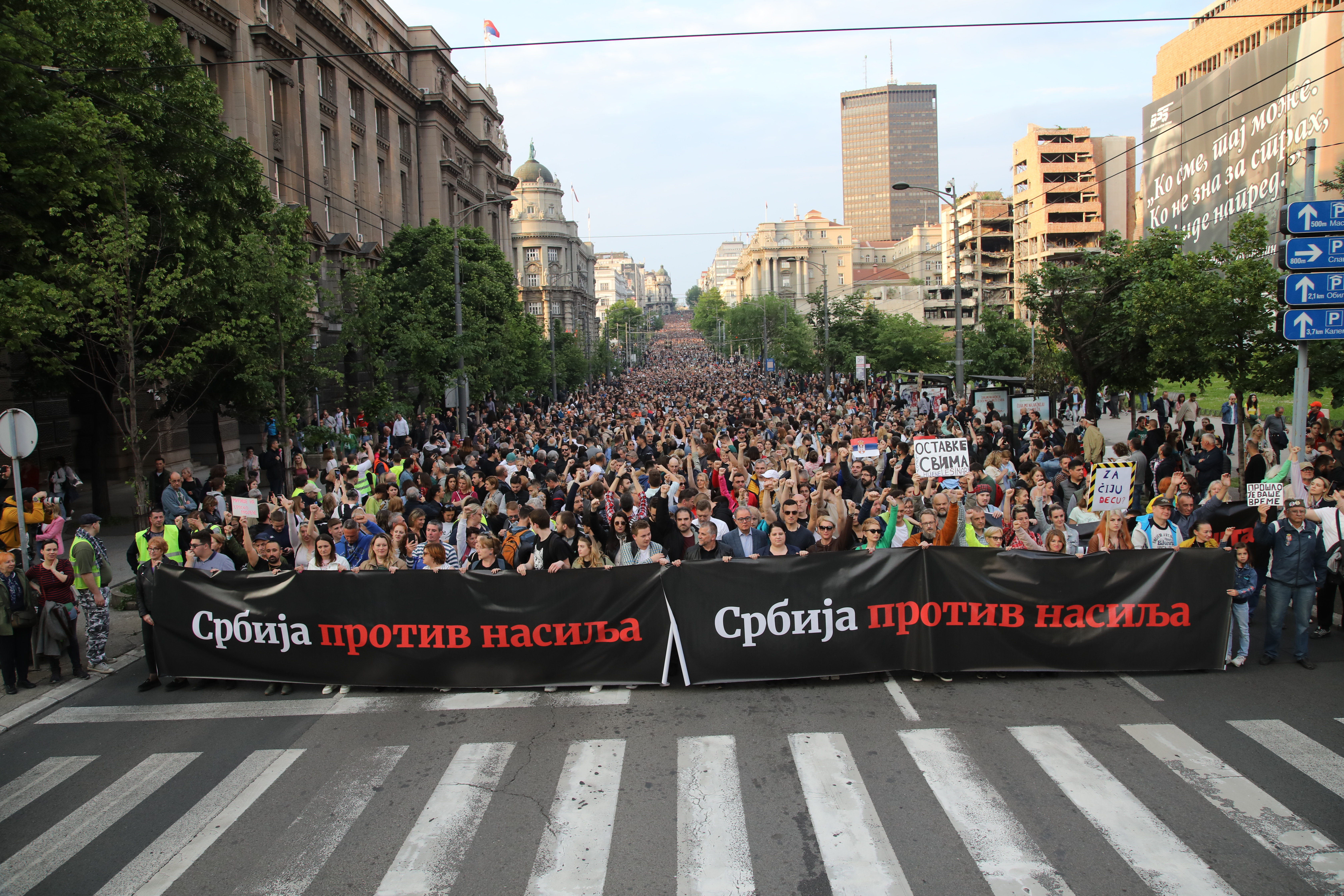 Протестующие выразили недовольство действиями властей после двух расстрелов, в результате которых погибли 18 человек, в том числе дети. Демонстранты призвали сербского президента Александра Вучича уйти в отставку. Также они потребовали увольнения двух министров и отзыва лицензий у двух телевизионных сетей, которые, по мнению митингующих, пропагандируют насилие и расхваливают криминальных личностей.