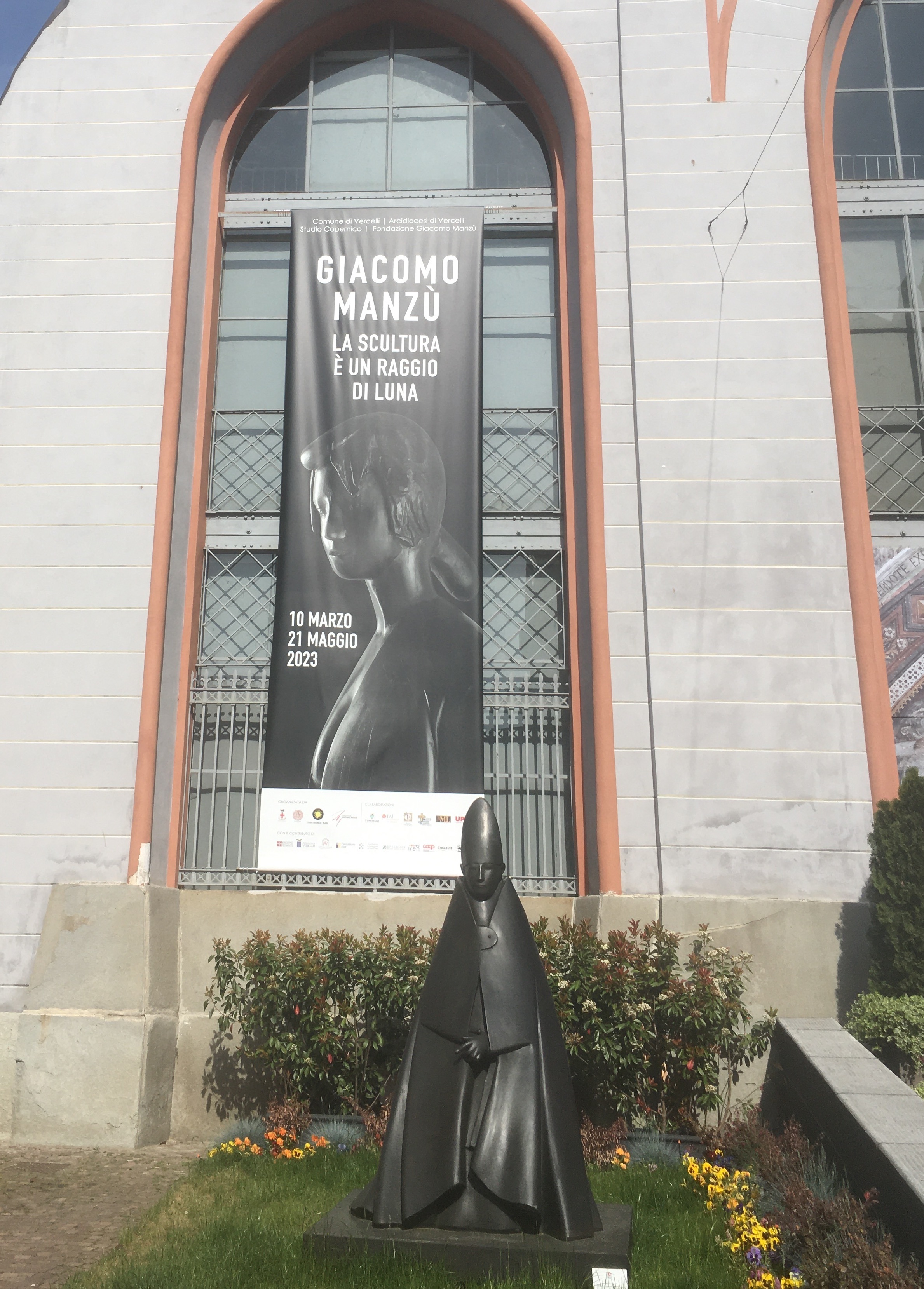 И вот теперь – дорогостоящая выставка. Скульптура – это мрамор, бронза, страховки, не каждый город, не каждое учреждение может позволить себе такую роскошь, тем более, скульптуру одного из самых знаменитых итальянских скульпторов ХХ века Джакомо Манцу. Афиши этой выставки повсюду висят в Милане – и на соборной площади, и в метро – да и в Турине тоже.