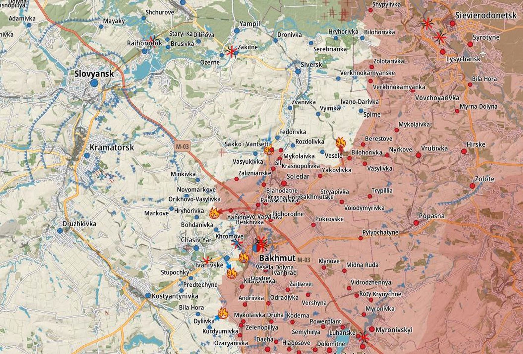 В Украине пока не подтверждают потерю Бахмута. Напротив, командующий Сухопутными войсками ВСУ Александр Сырский говорит о давлении на флангах и приближении к «тактическому окружению» города. Со своей стороны отметим, что пока до этого очень далеко — впрочем, может иметься в виду занятие господствующих высот вокруг города, о котором не так давно говорил Пригожин.